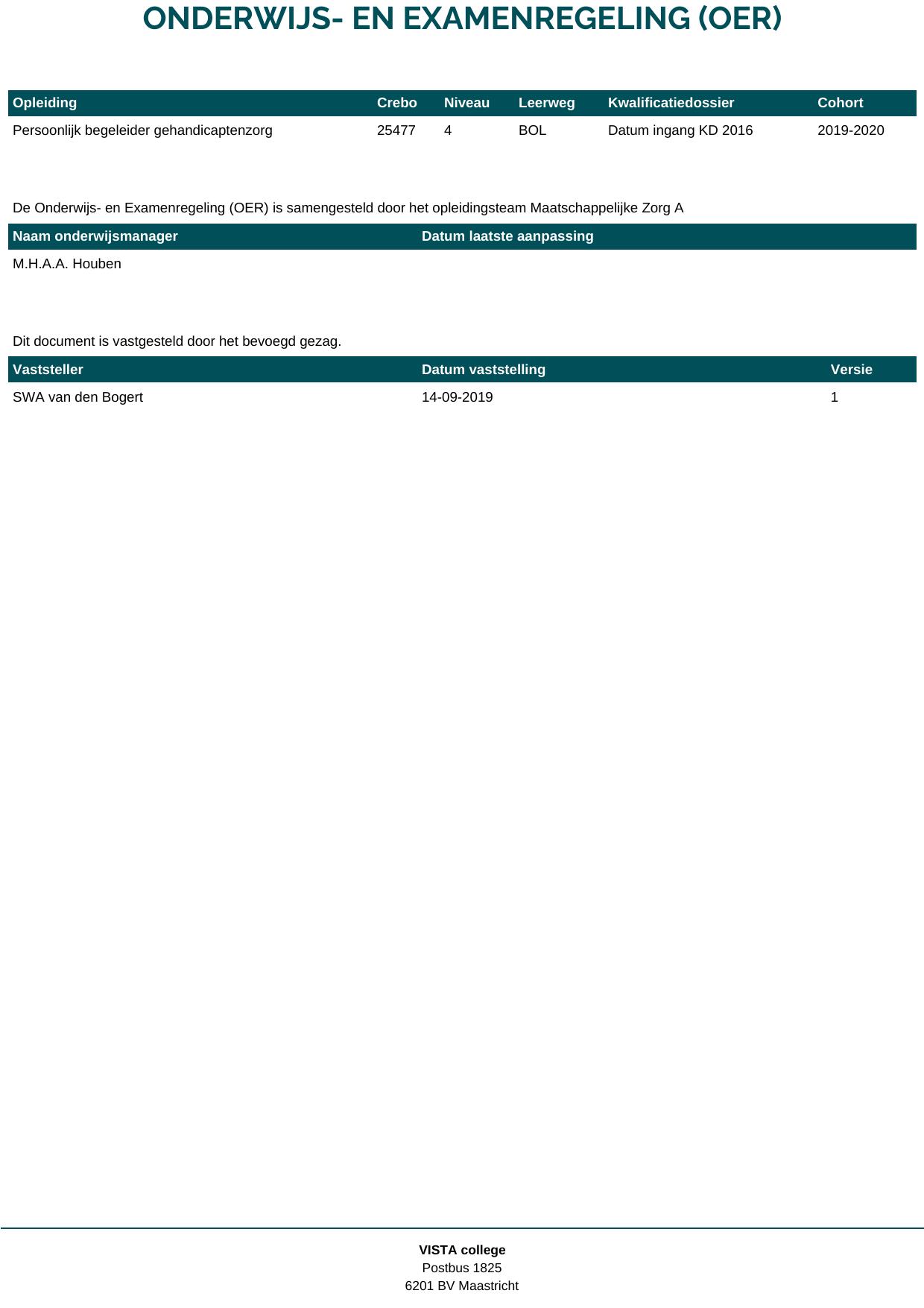 Persoonlijk begeleider gehandicaptenzorg 25477B1S in cohort 2019-2020