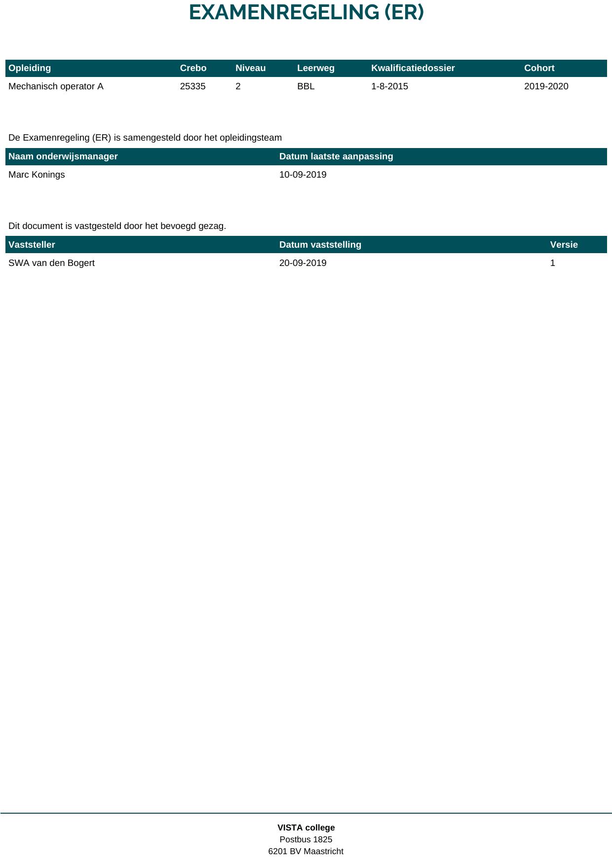 Mechanisch operator A 25335O1S in cohort 2019-2020