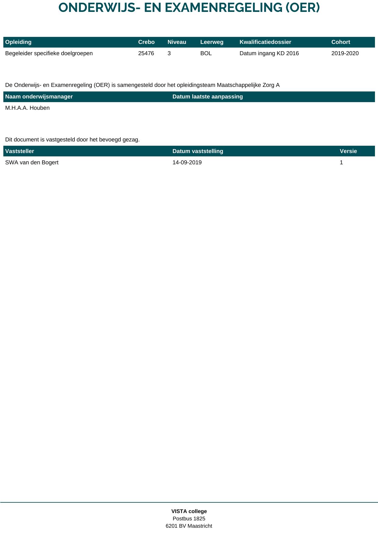 Begeleider specifieke doelgroepen 25476O1S in cohort 2019-2020
