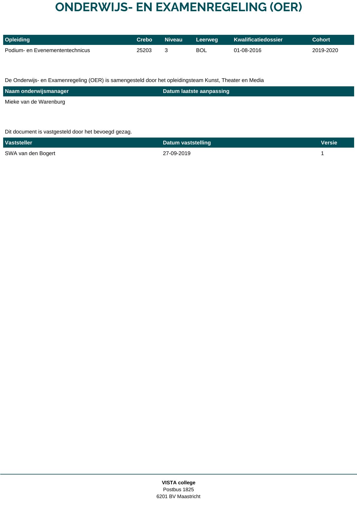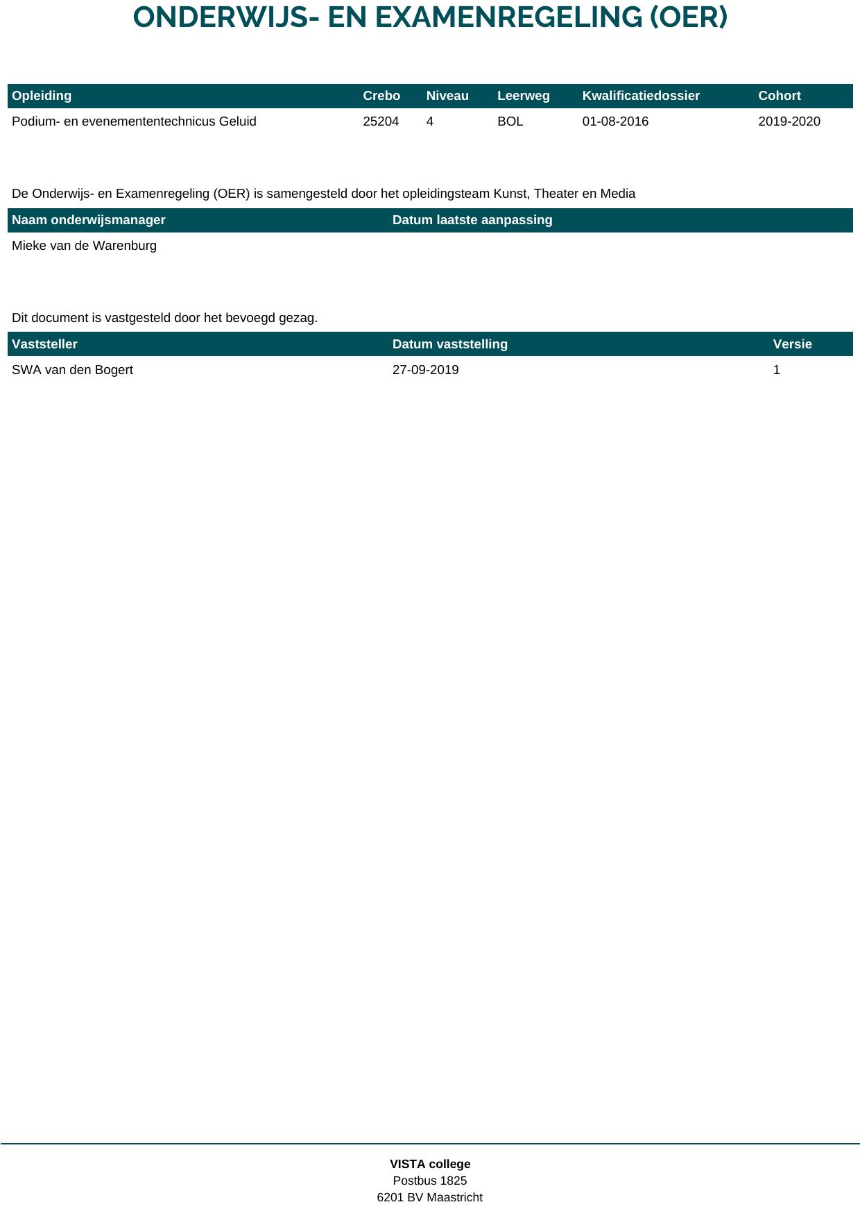 Podium- en Evenemententechnicus 25203O1S in cohort 2019-2020