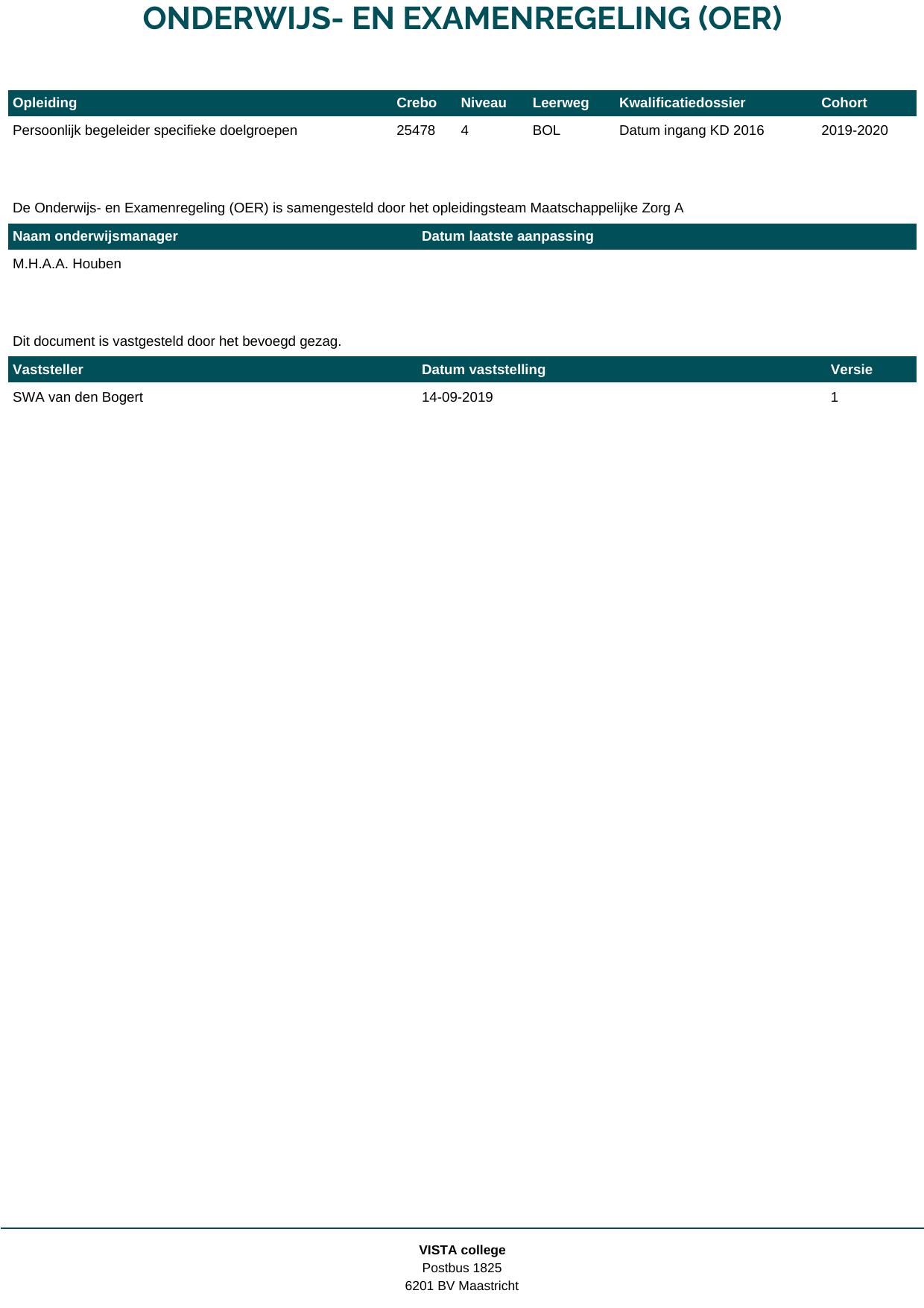 Persoonlijk begeleider specifieke doelgroepen 25478B1S in cohort 2019-2020