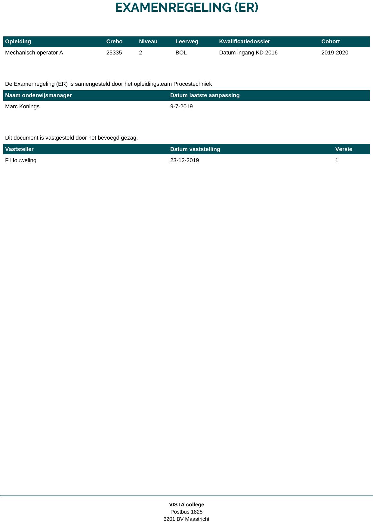 Mechanisch operator A 25335B1E in cohort 2019-2020