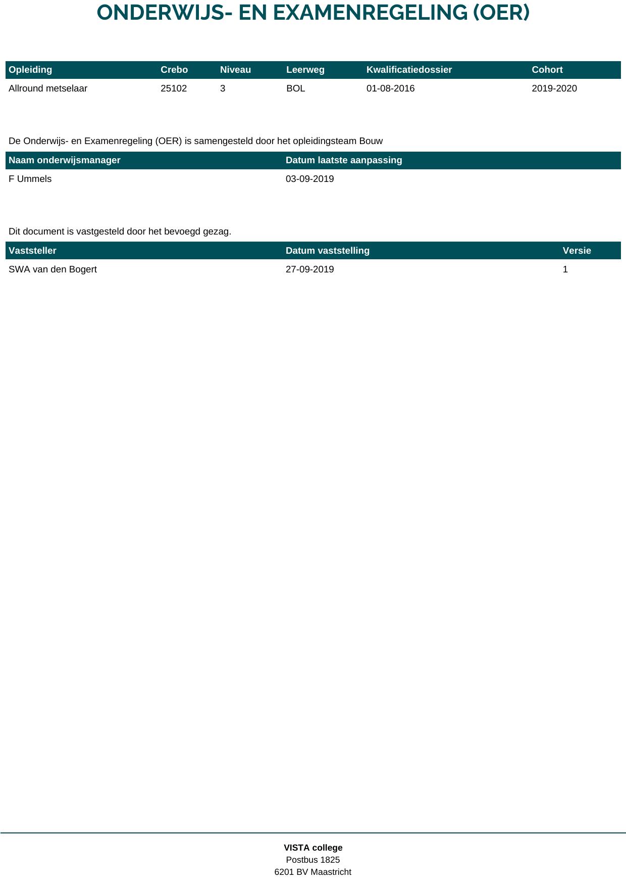 Eerste monteur woning 25349O1S in cohort 2019-2020