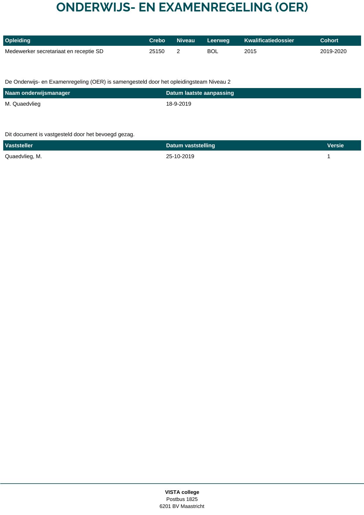 Medewerker secretariaat en receptie SD 25150O5S in cohort 2019-2020