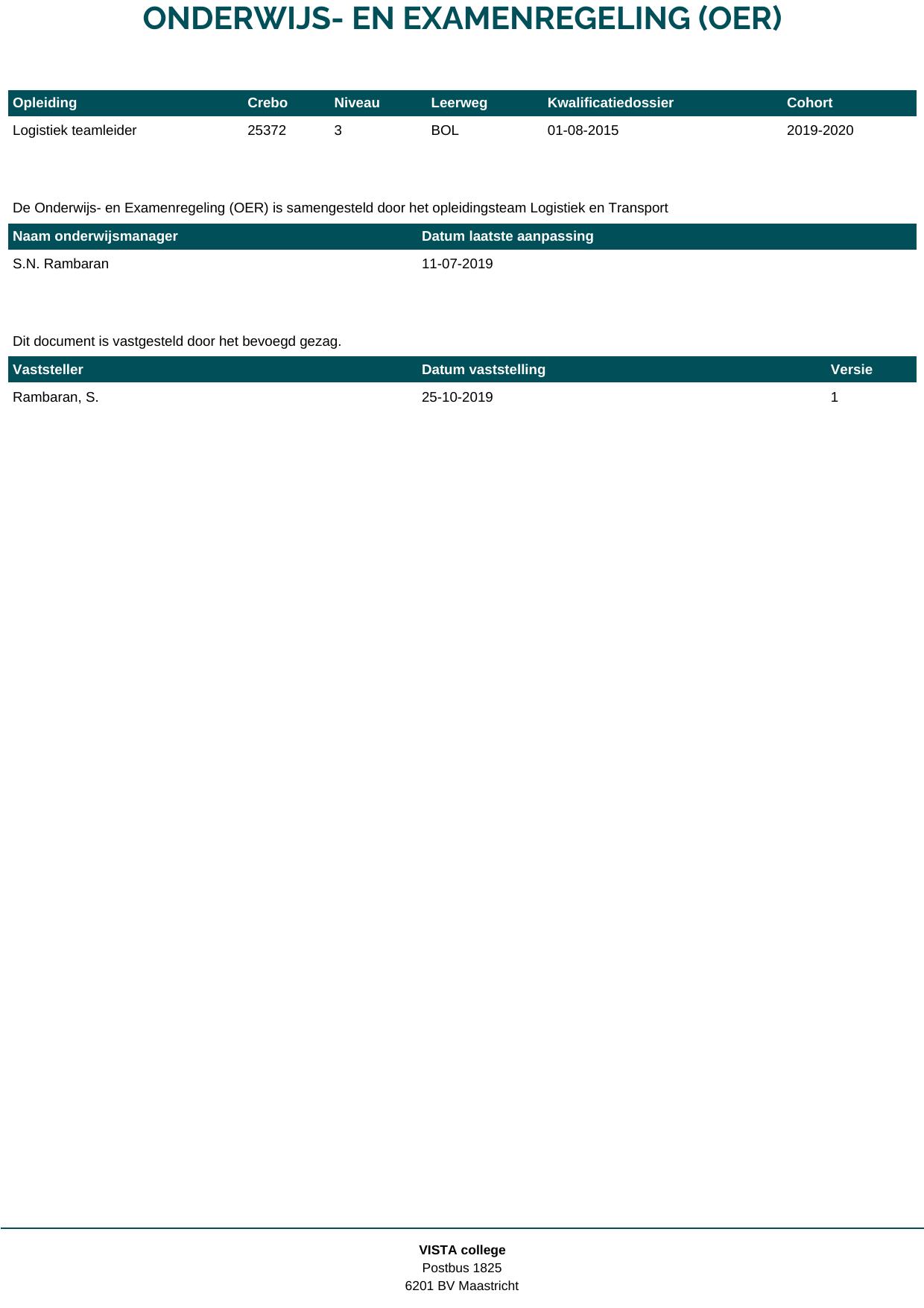 Logistiek teamleider 25372O1S in cohort 2019-2020