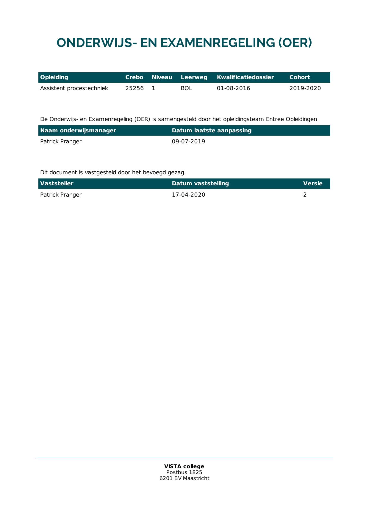 Assistent procestechniek 25256O1S in cohort 2019-2020