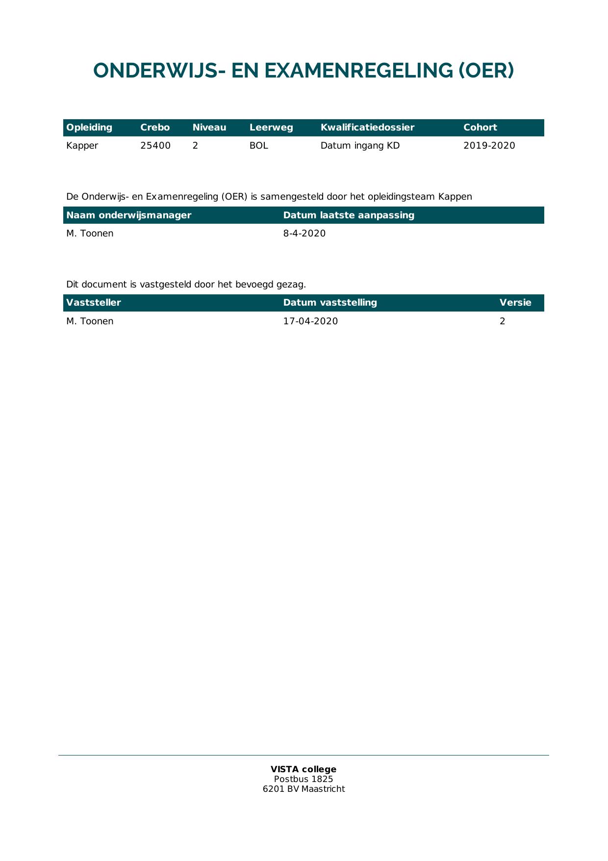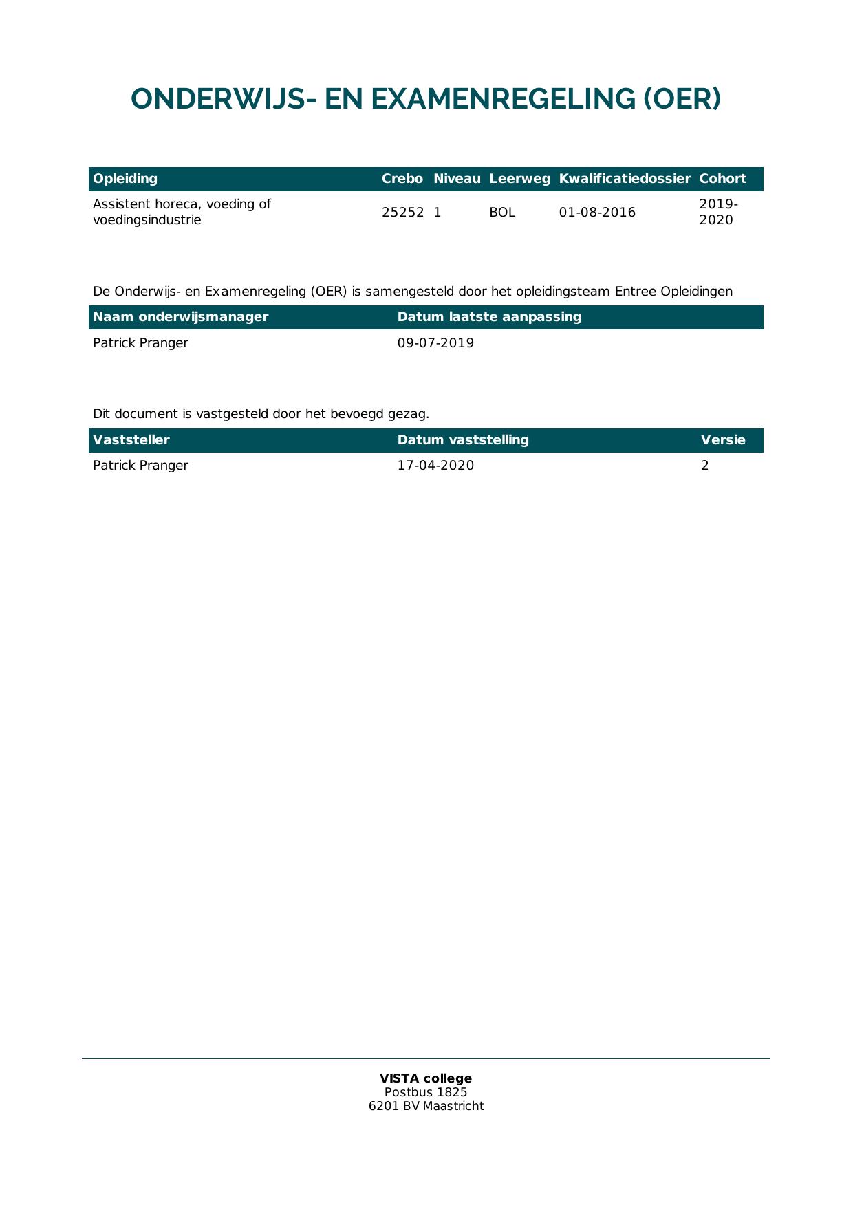 Assistent horeca, voeding of voedingsindustrie 25252O1S in cohort 2019-2020