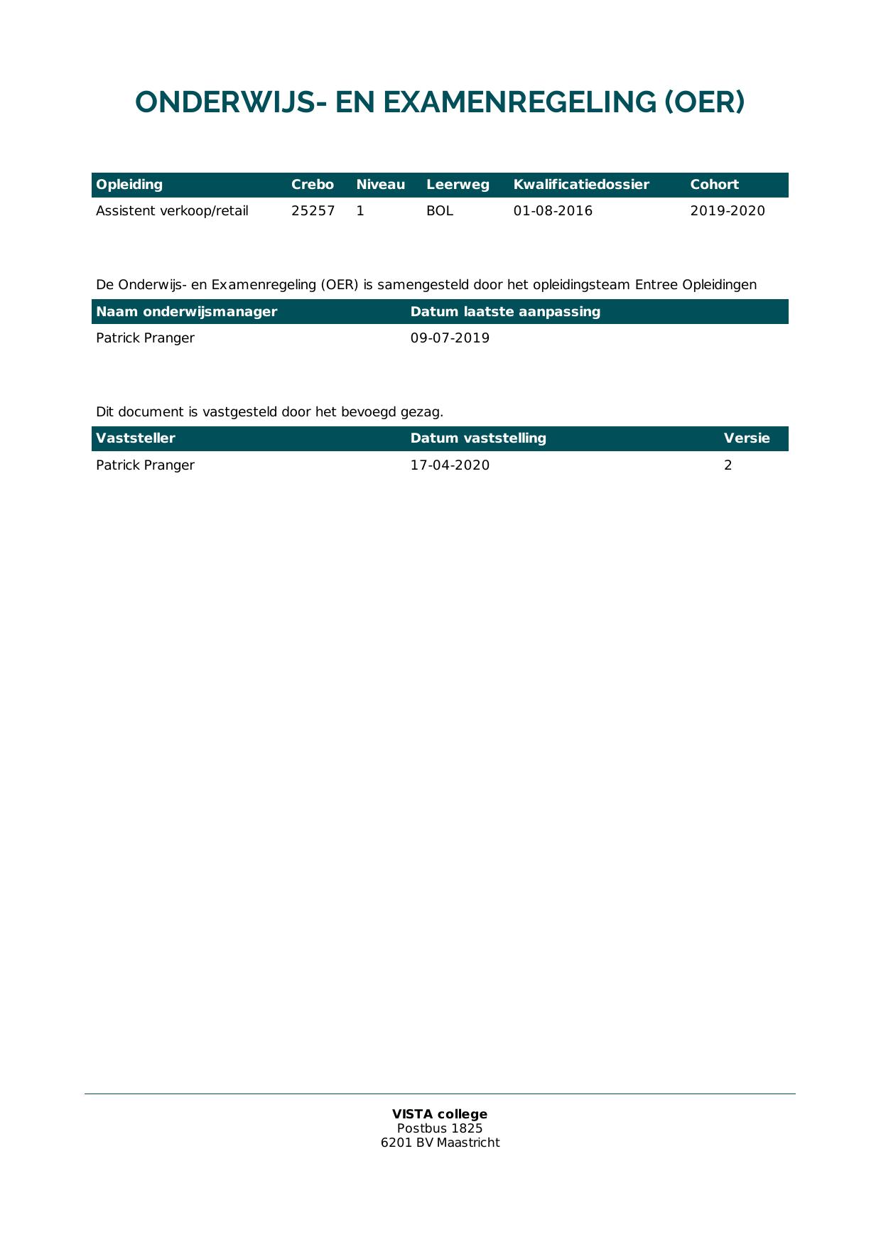 Assistent verkoop/retail 25257O1S in cohort 2019-2020