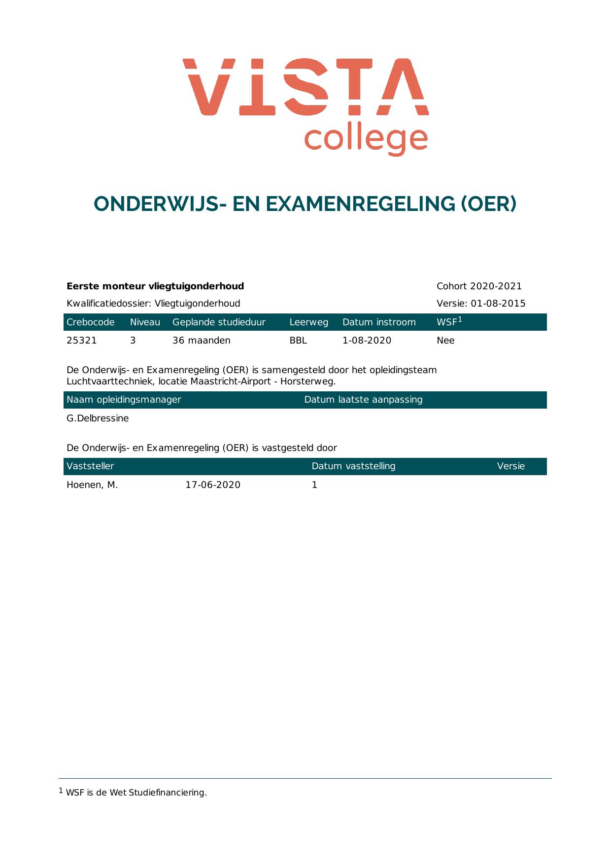Eerste monteur vliegtuigonderhoud 25321B1S in cohort 2020-2021