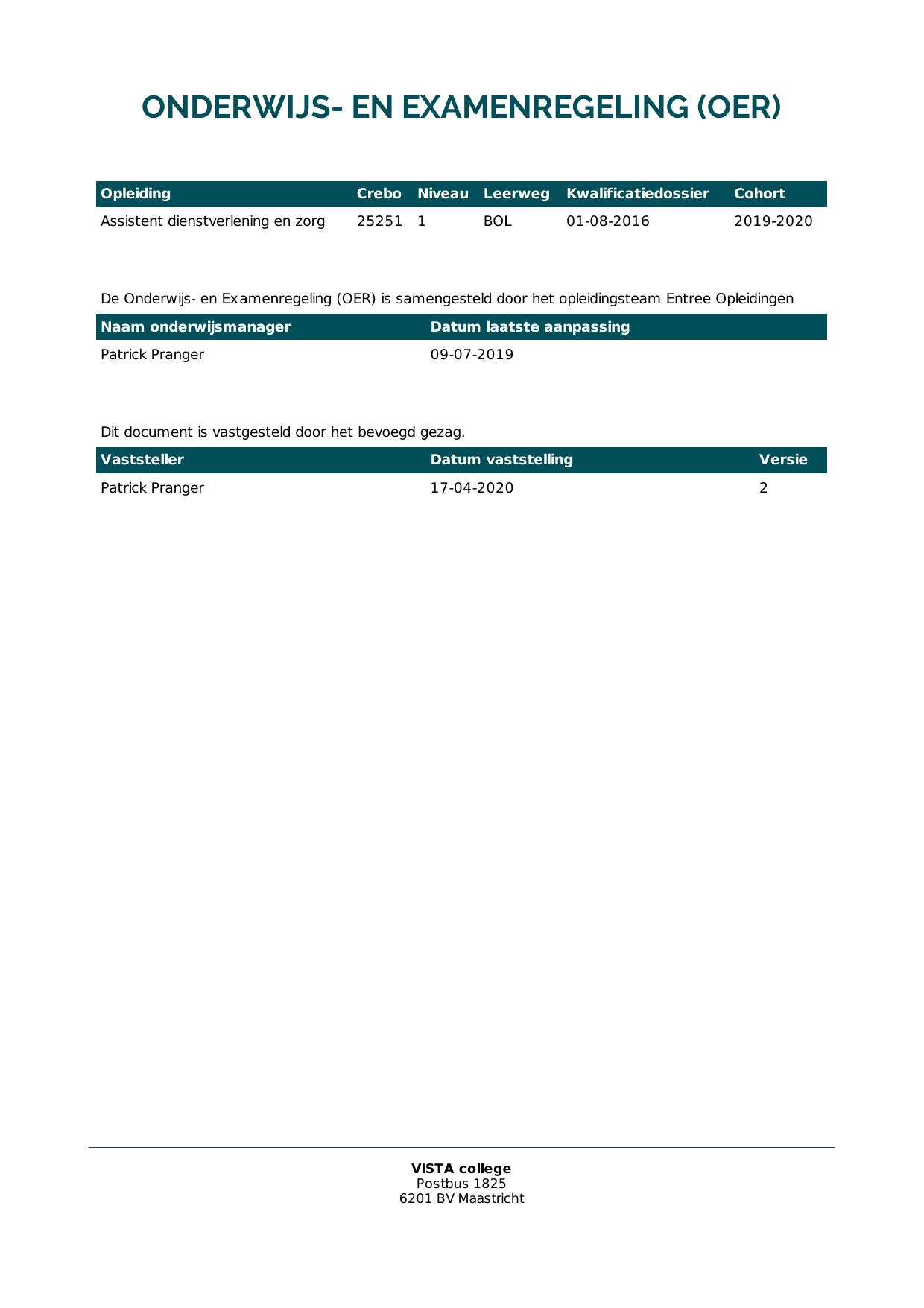 Assistent dienstverlening en zorg 25251O1S in cohort 2019-2020
