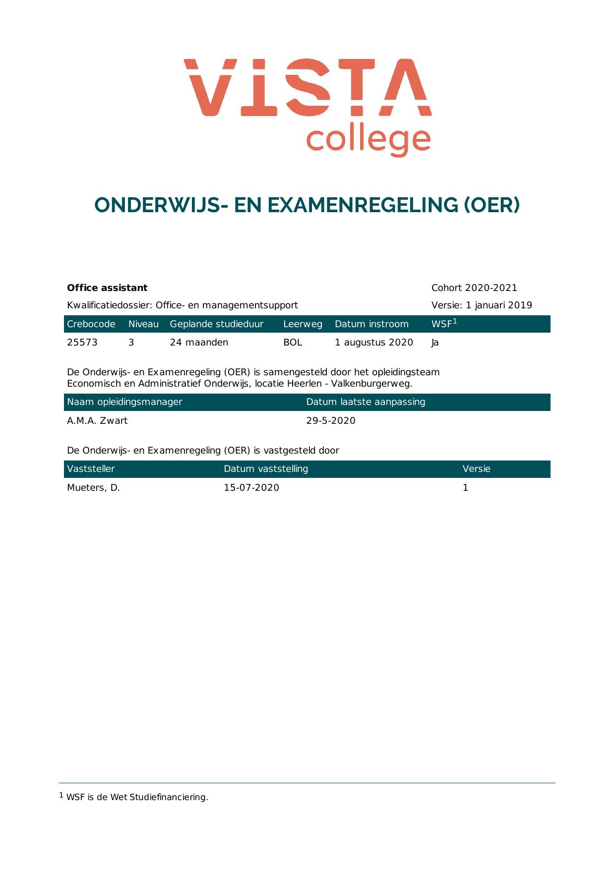 Office assistant 25573O1S in cohort 2020-2021