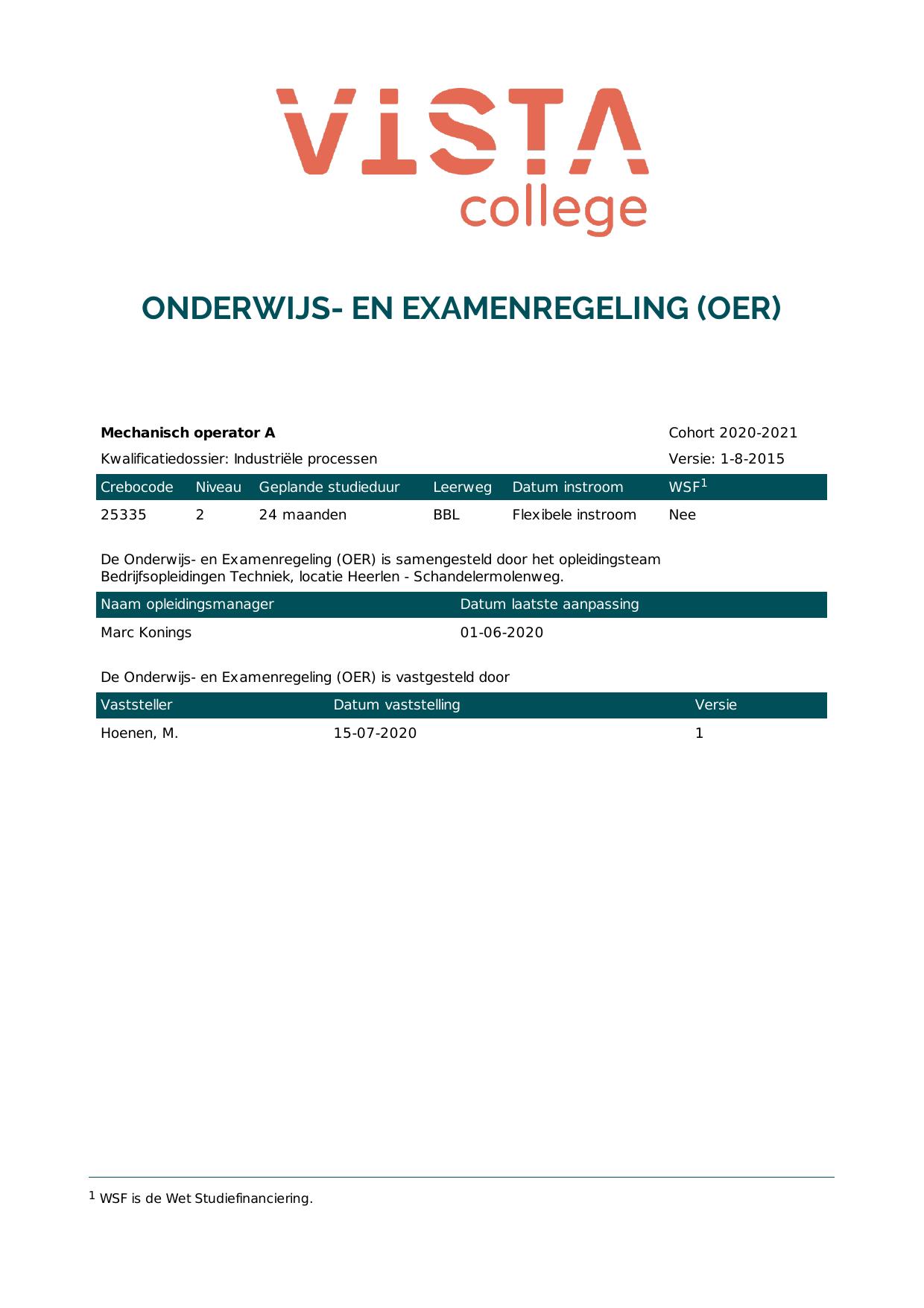 Mechanisch operator A 25335B1E in cohort 2020-2021