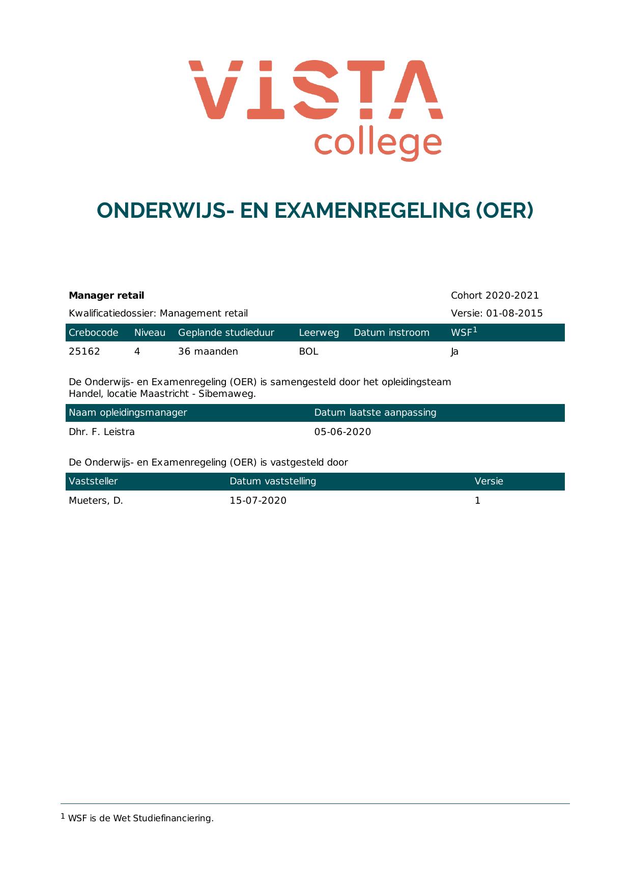 Leidinggevende bediening 25170O1S in cohort 2020-2021