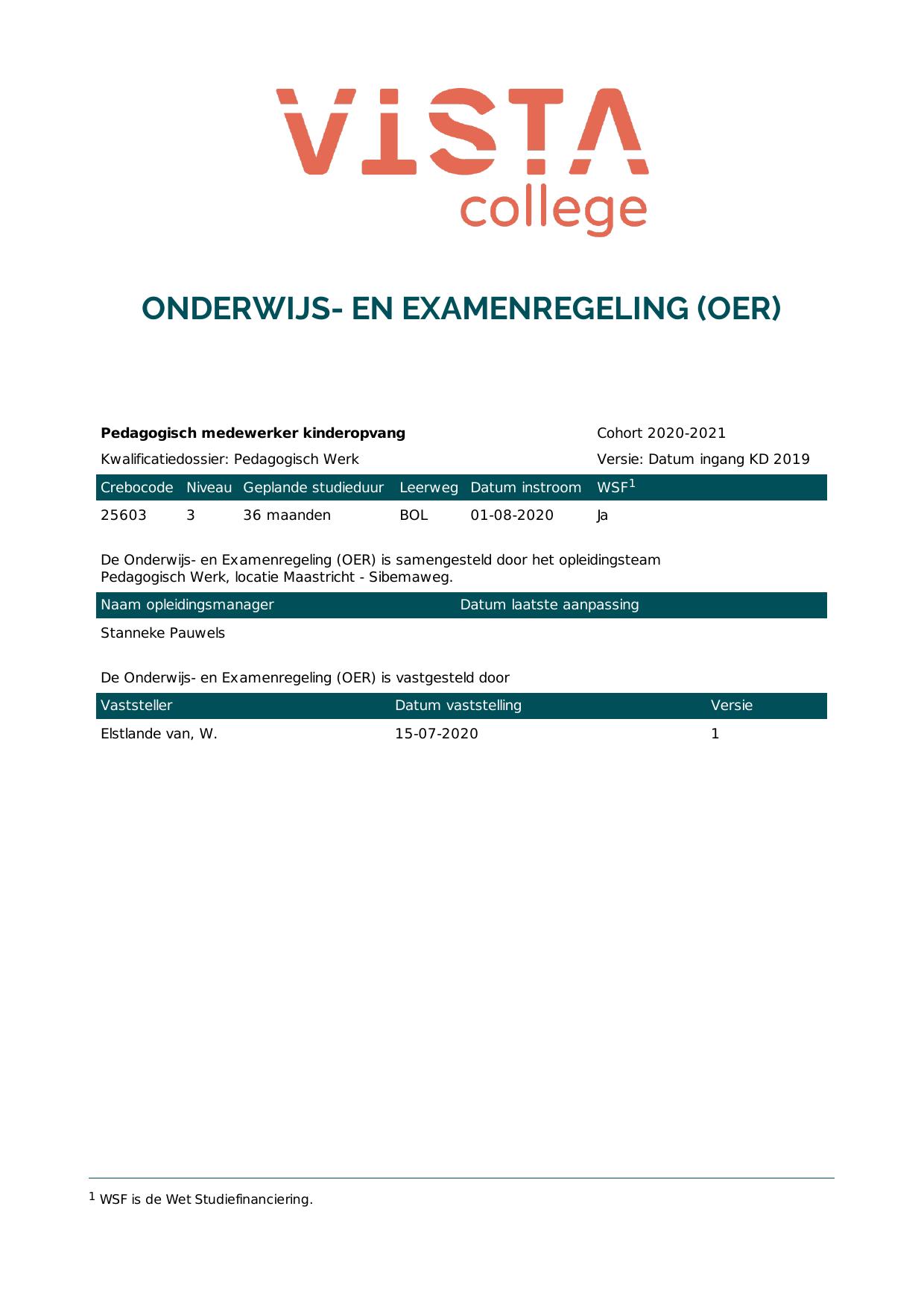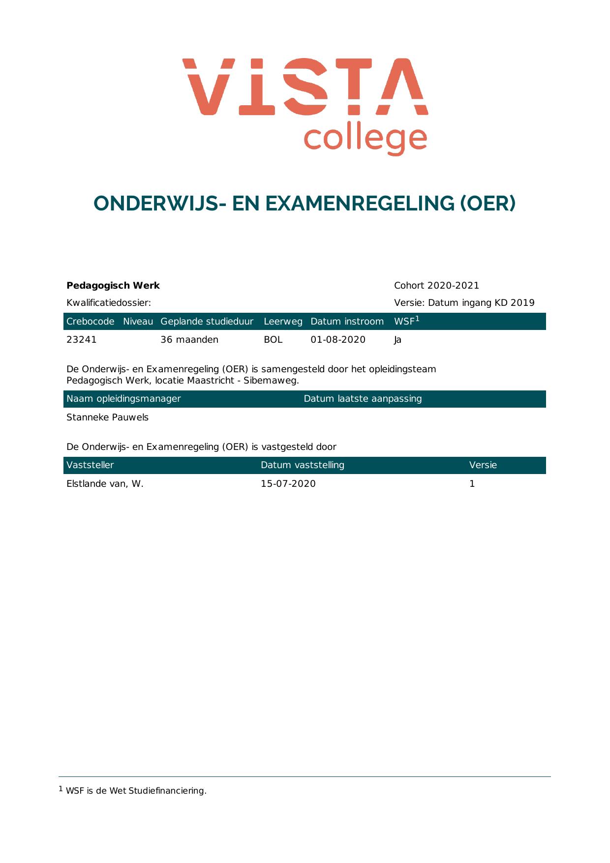 Pedagogisch Werk 4P23241BV3V1 in cohort 2020-2021