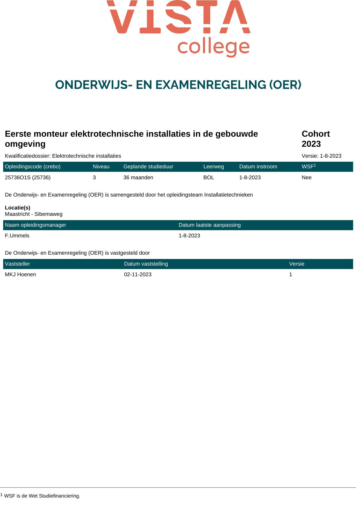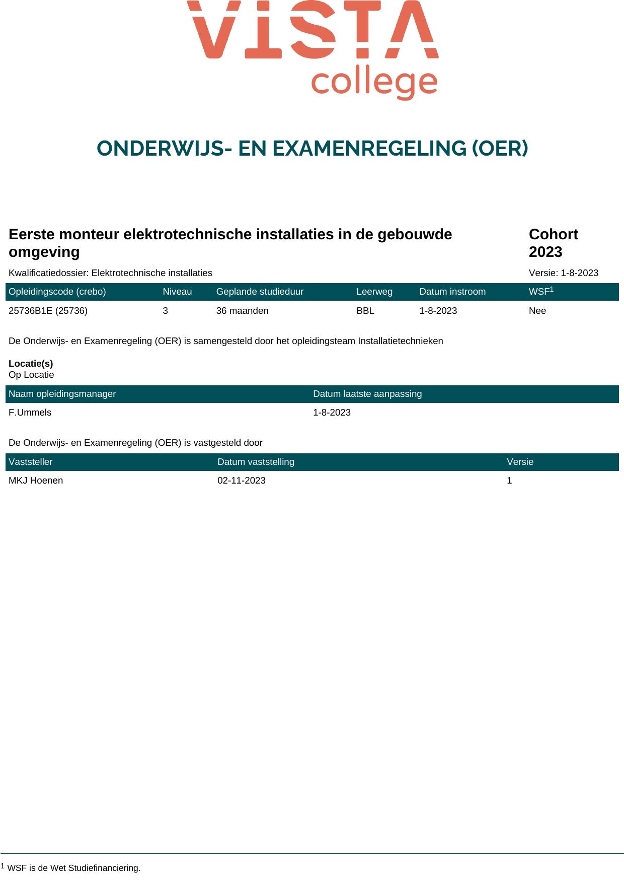 Eerste monteur elektrotechnische installaties in de gebouwde omgeving 25736O1S in cohort 2023-2024