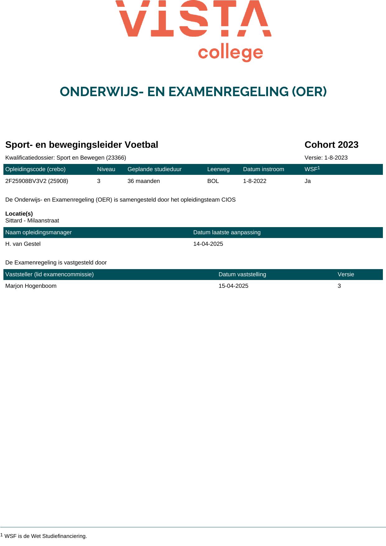 Sport- en bewegingsleider Voetbal 2F25908BV3V2 in cohort 2023-2024