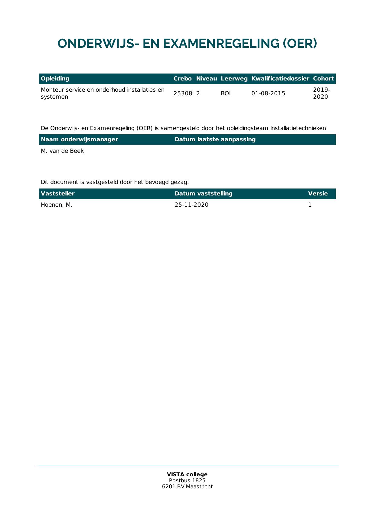 Monteur service en onderhoud installaties en systemen 25308O2S in cohort 2020-2021