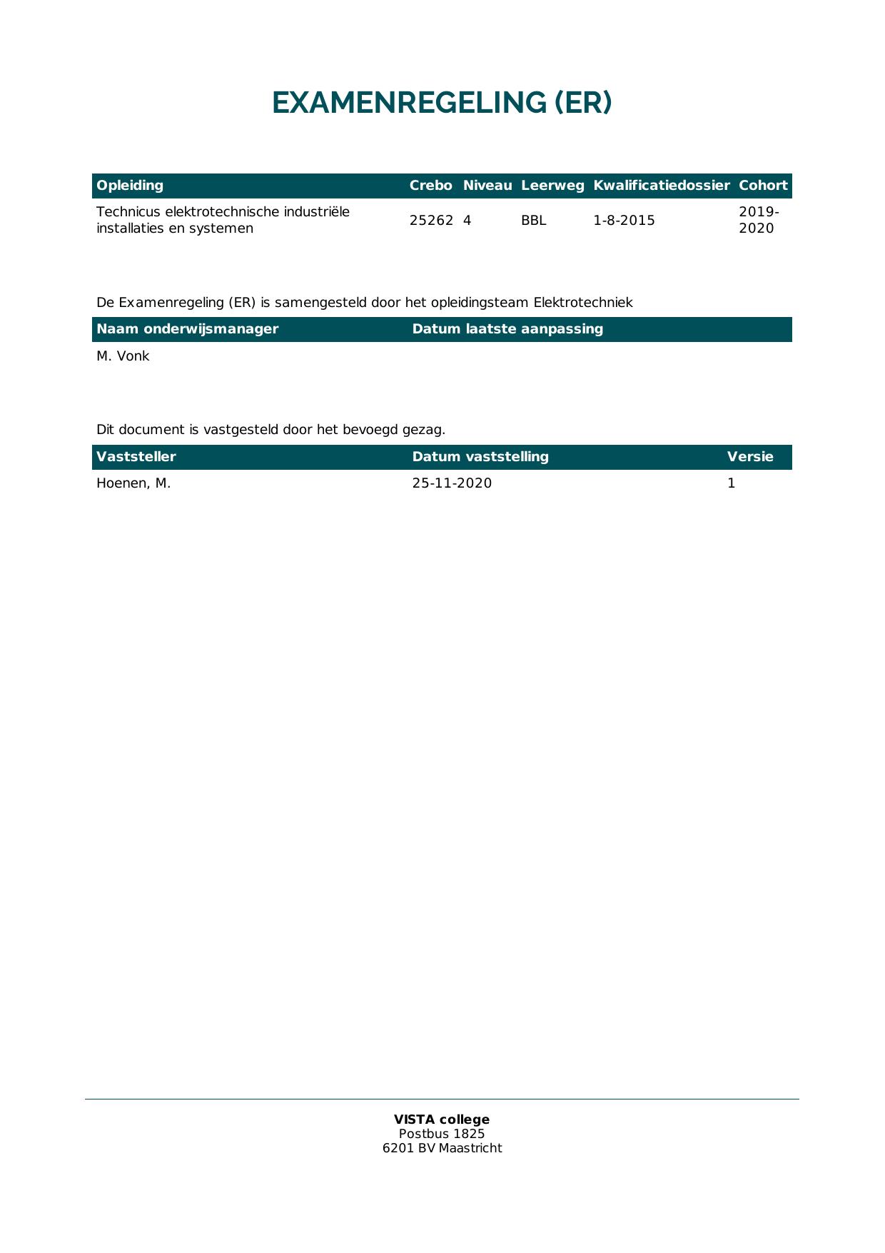 Technicus elektrotechnische industriële installaties en systemen 25262O1S in cohort 2019-2020