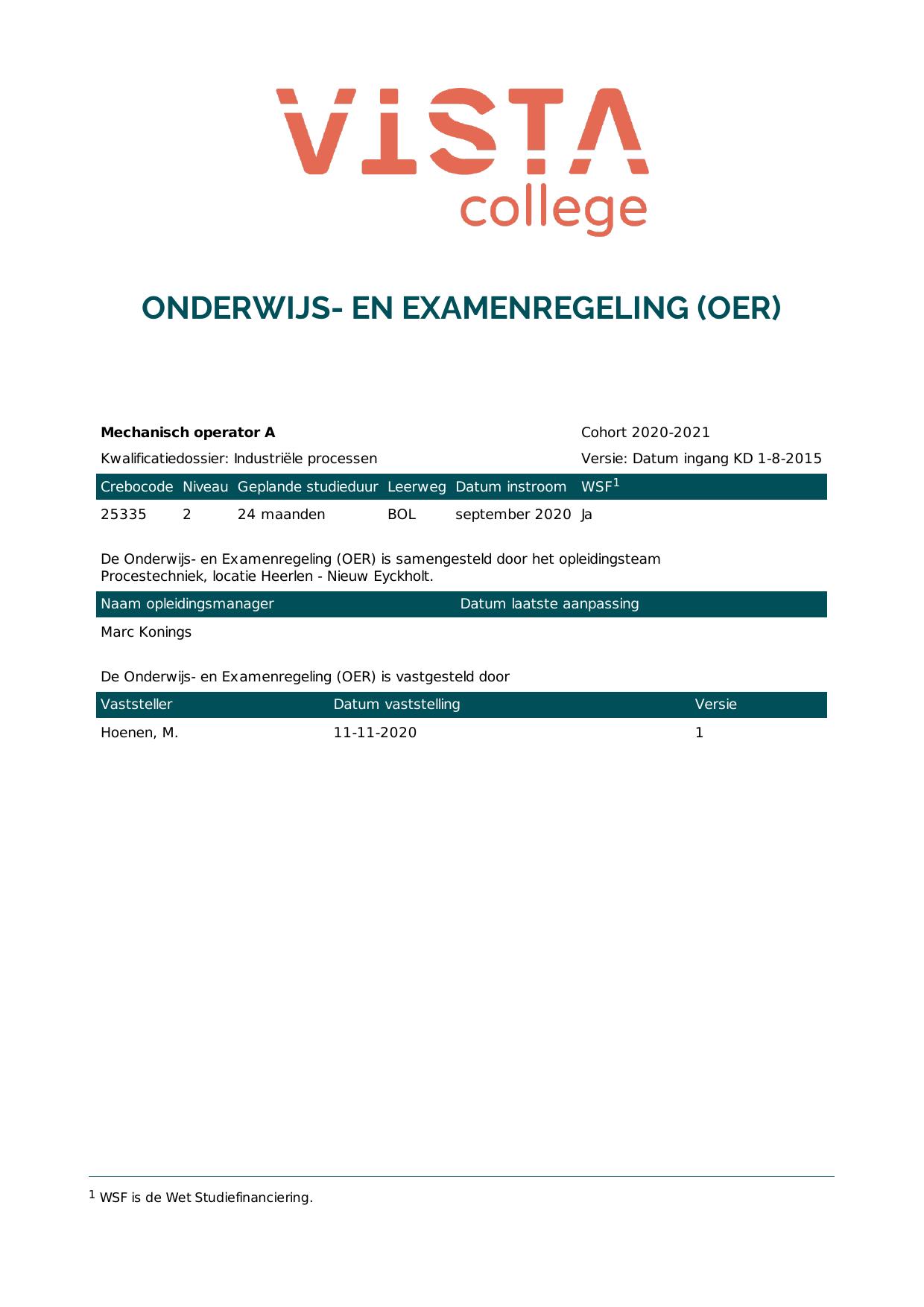 Mechanisch operator A 25335O1S in cohort 2020-2021