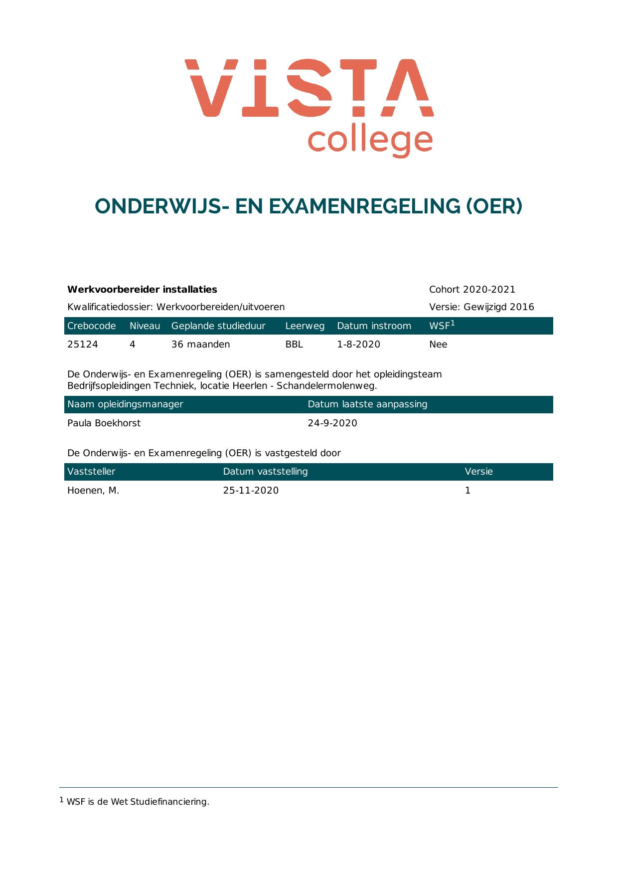 Werkvoorbereider installaties 25124B1E in cohort 2020-2021