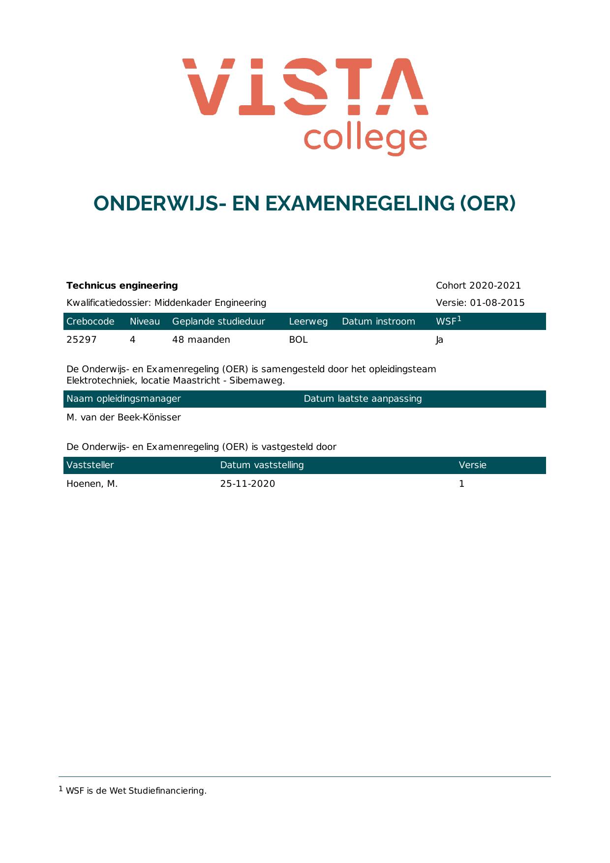 Technicus engineering 25297O4S in cohort 2020-2021