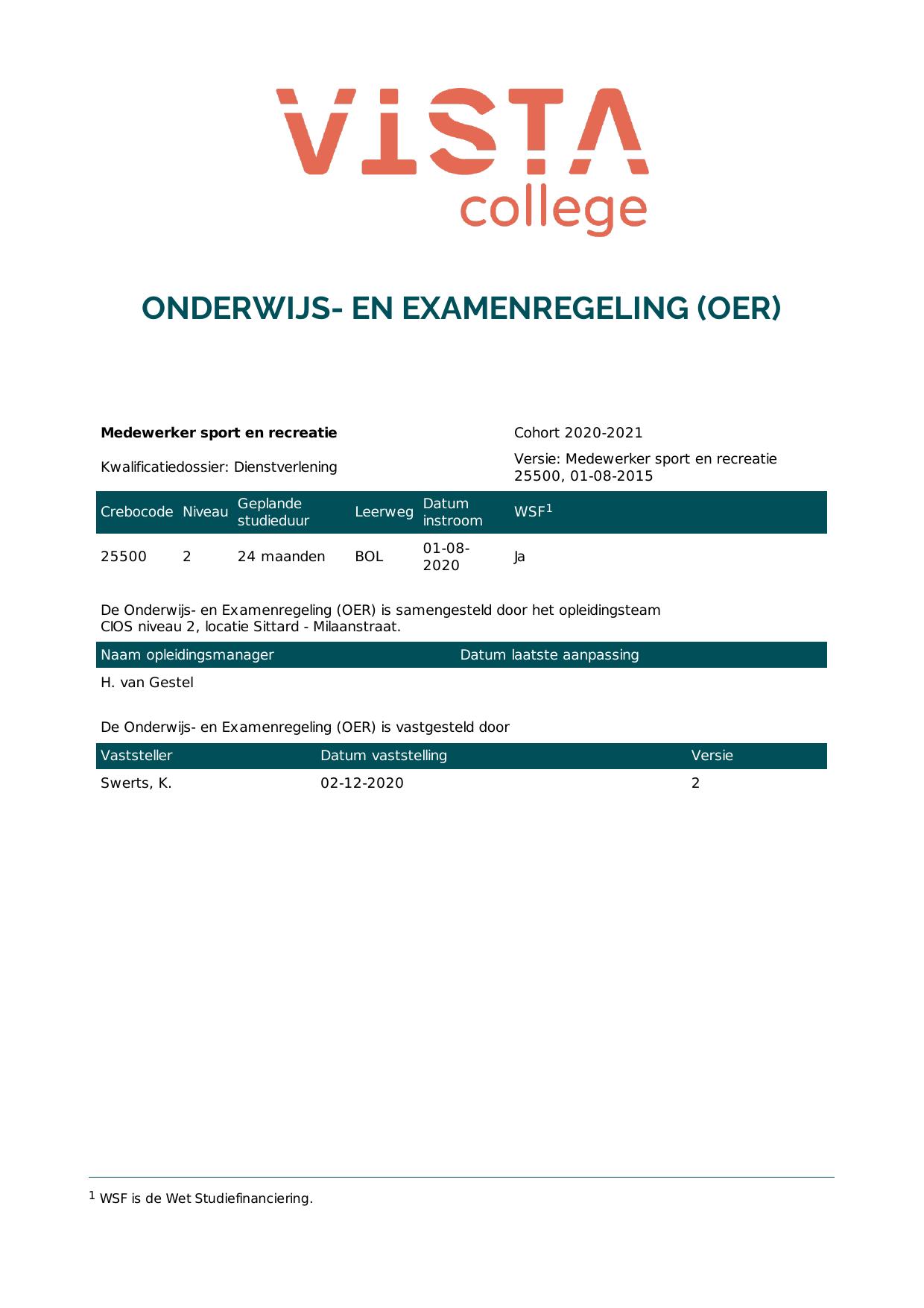 Medewerker sport en recreatie 2E25500BV2V1 in cohort 2020-2021