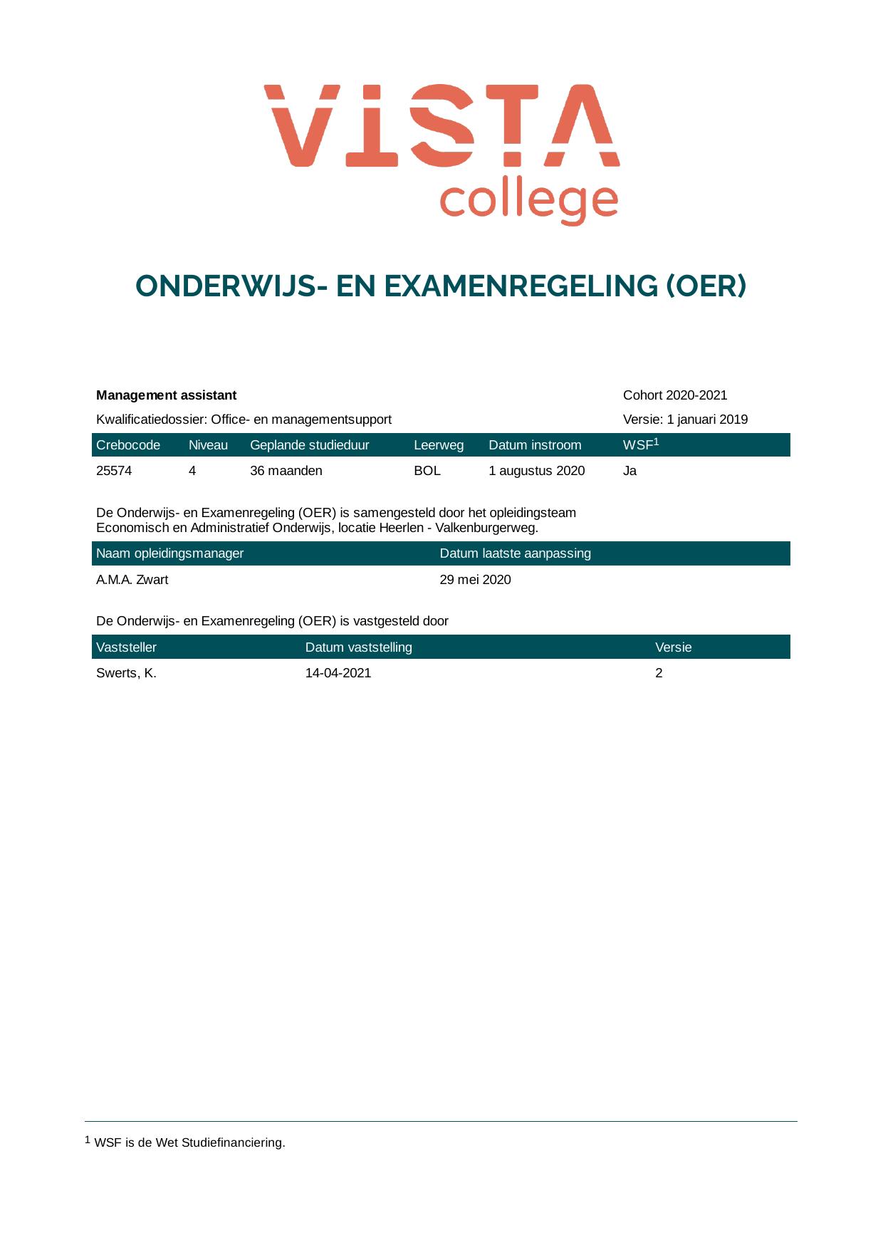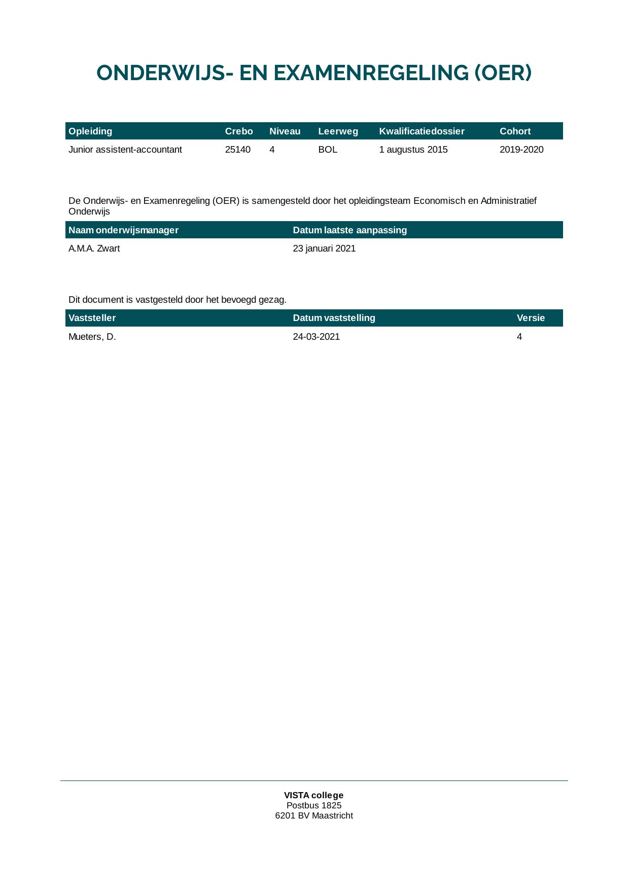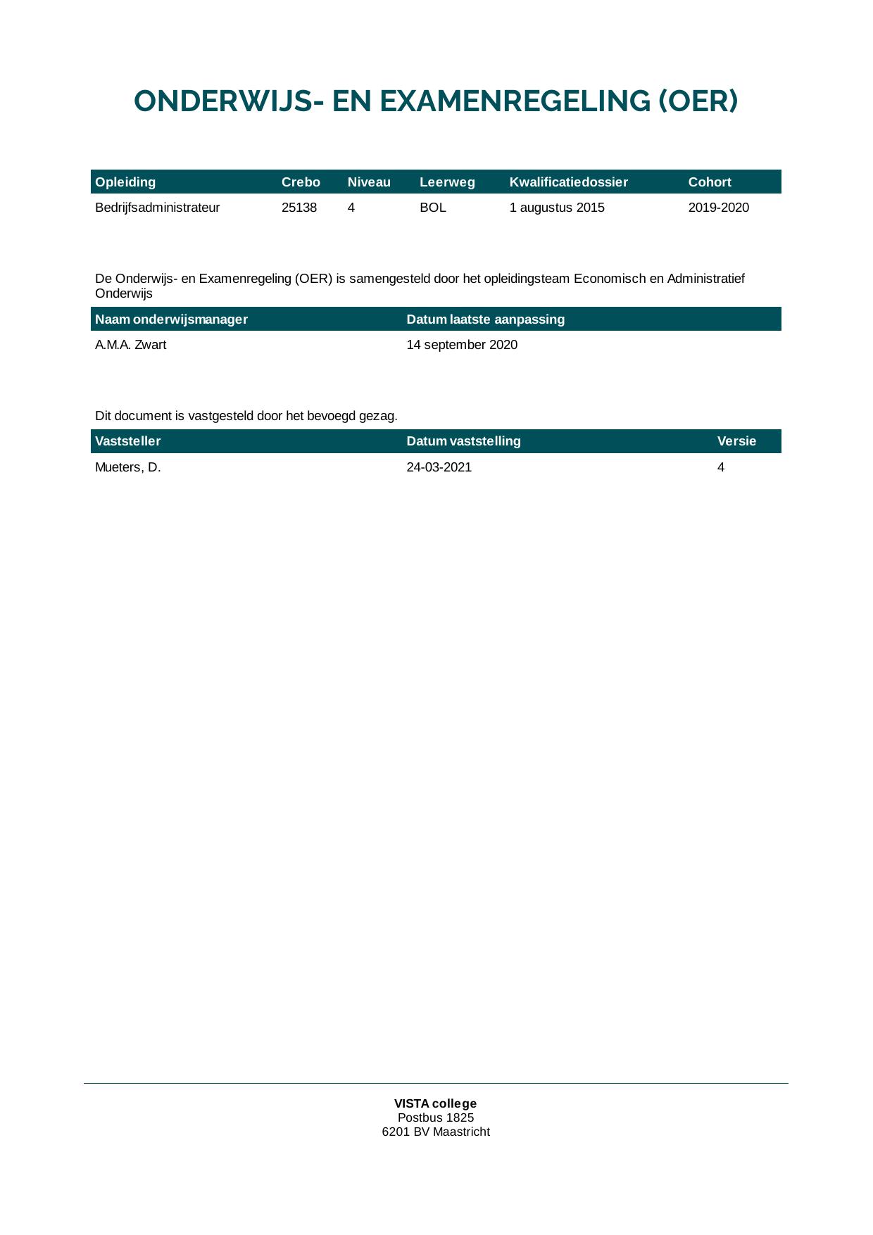 Bedrijfsadministrateur 25138O1S in cohort 2019-2020