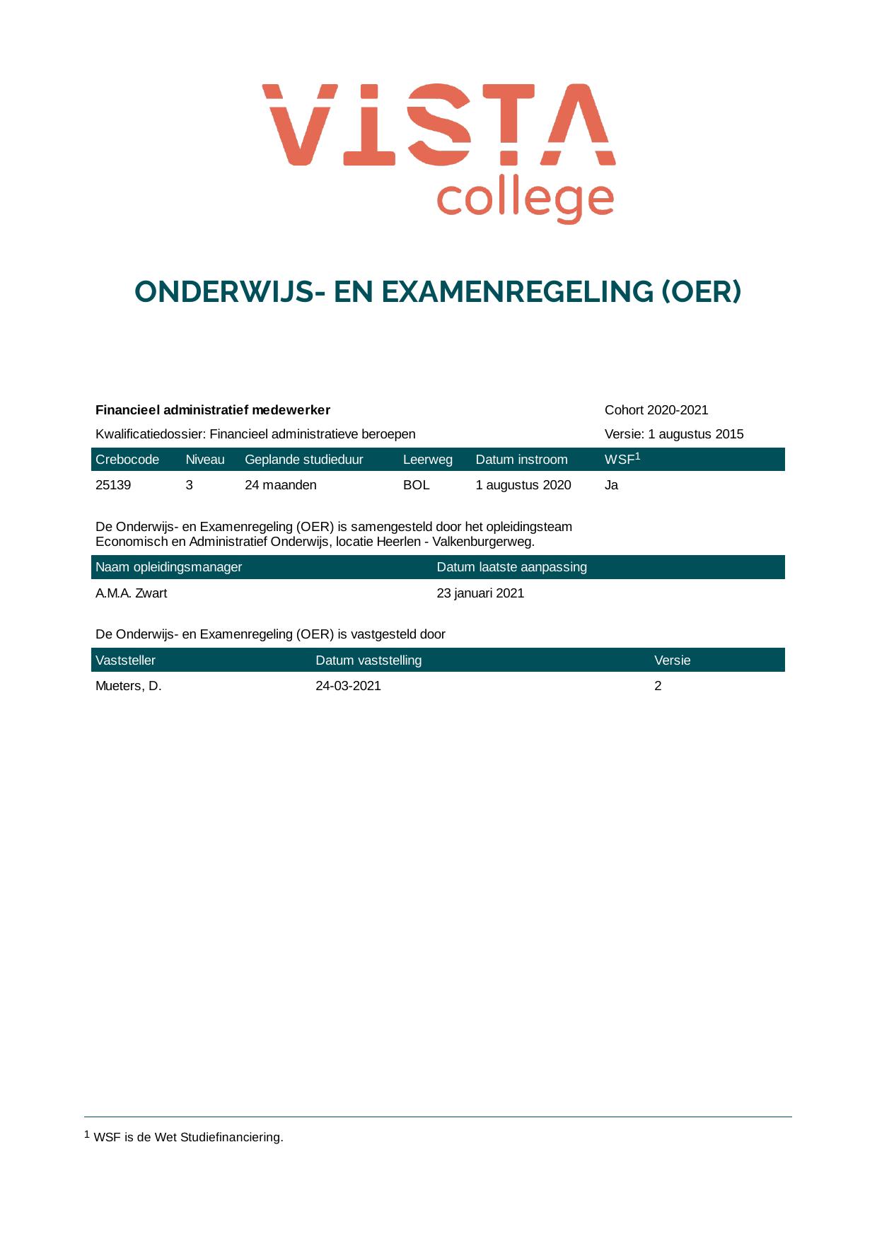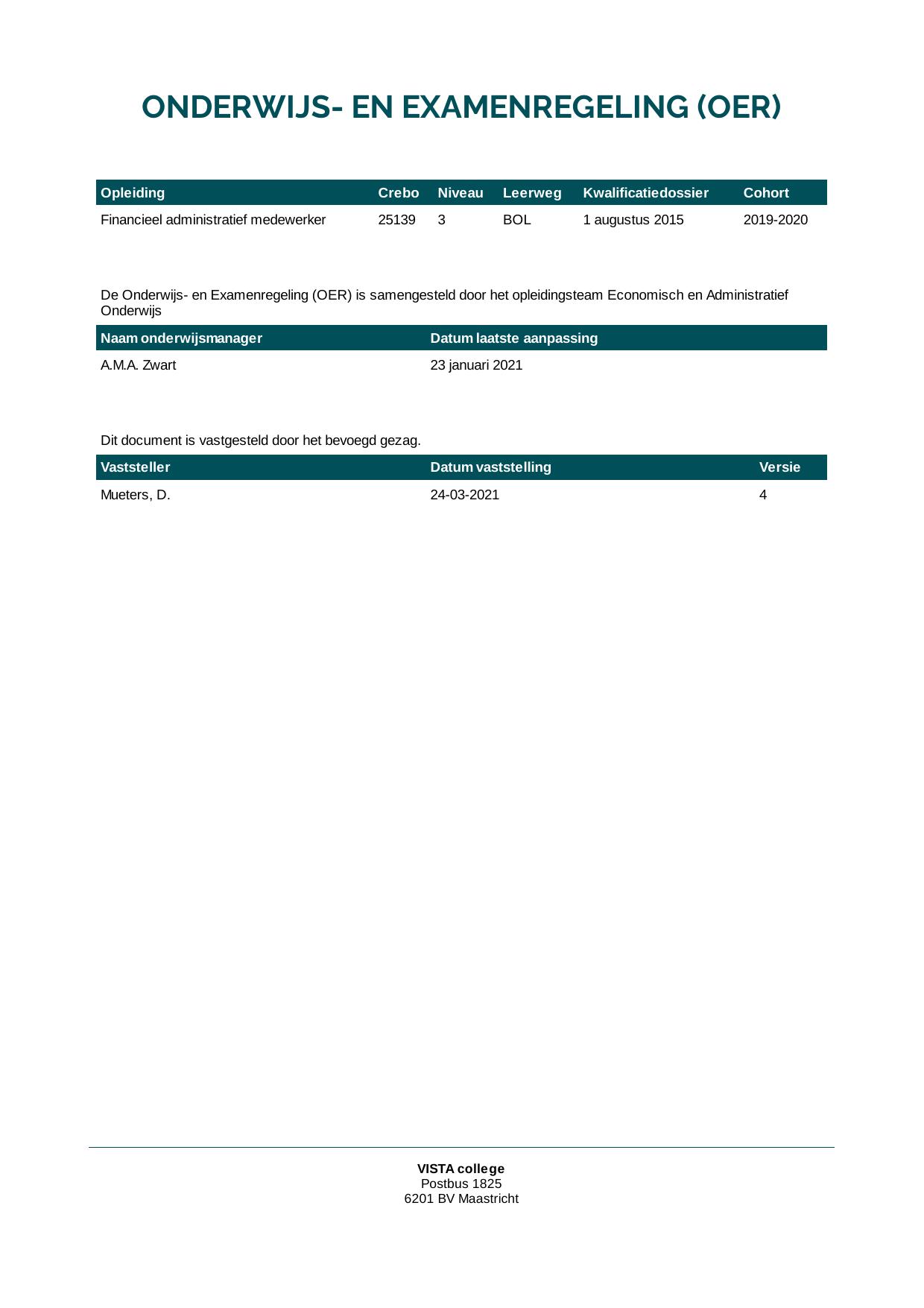 Financieel administratief medewerker 25139O1S in cohort 2020-2021