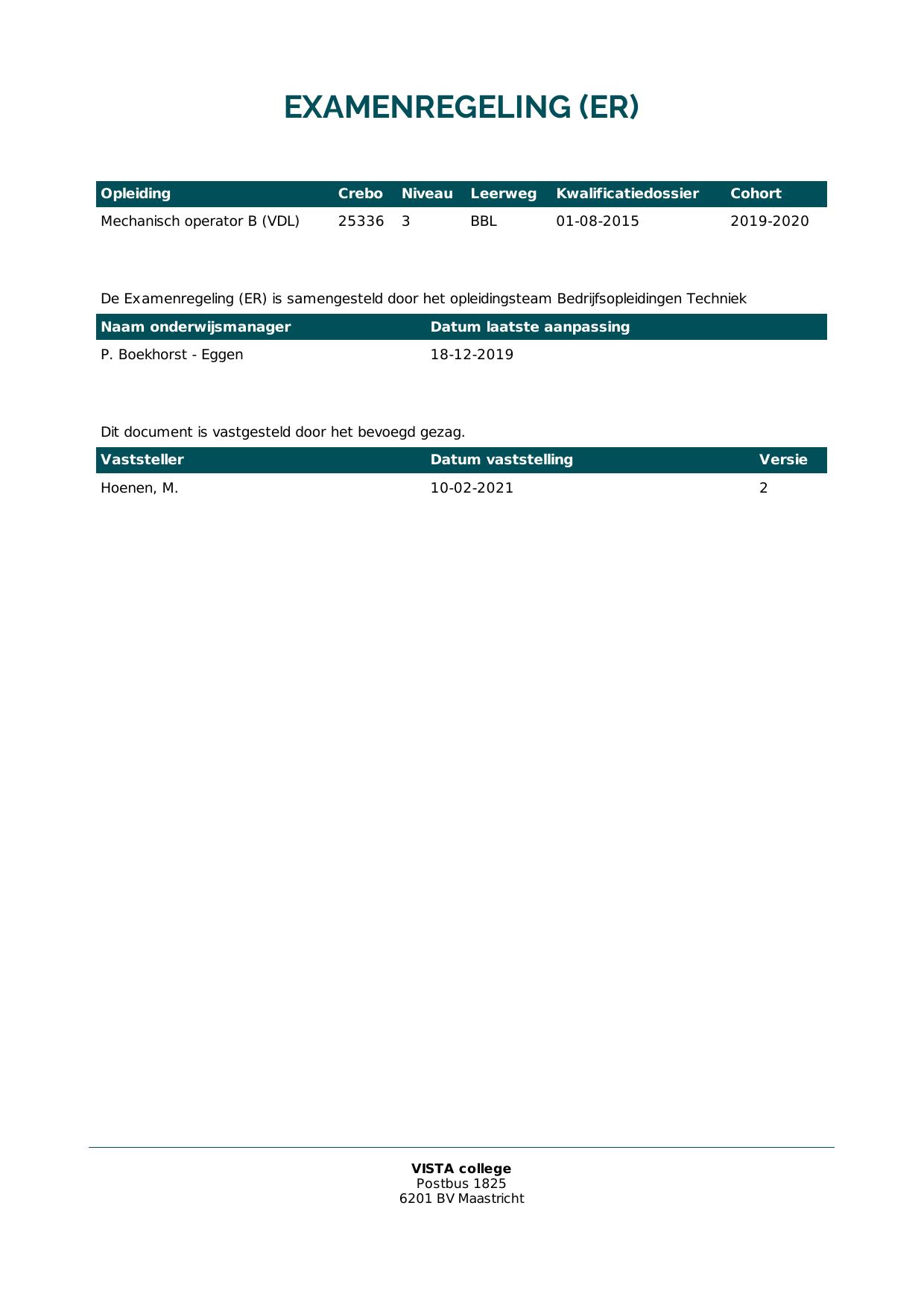 Mechanisch operator B (VDL) 25336B1EVDL in cohort 2019-2020