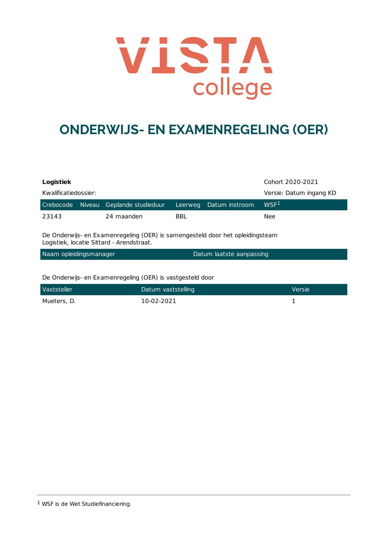 Logistiek 1L23143BB2V1 in cohort 2020-2021