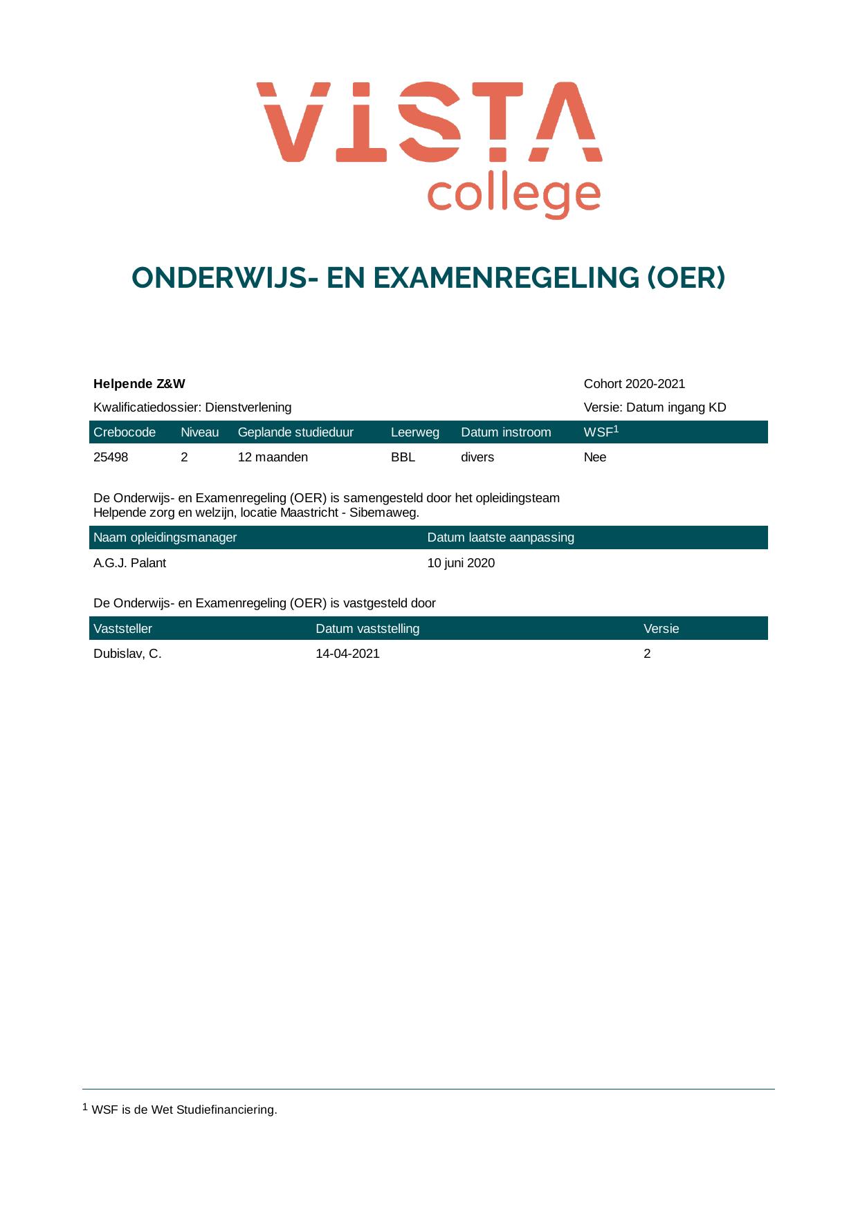Gastheer/-vrouw 25168B1S in cohort 2020-2021
