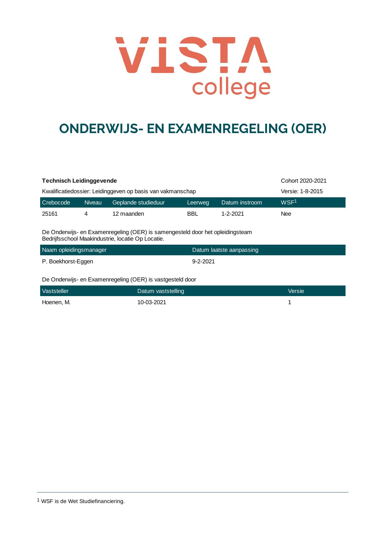 Technisch Leidinggevende (VDL) 25161B1EVDL in cohort 2020-2021