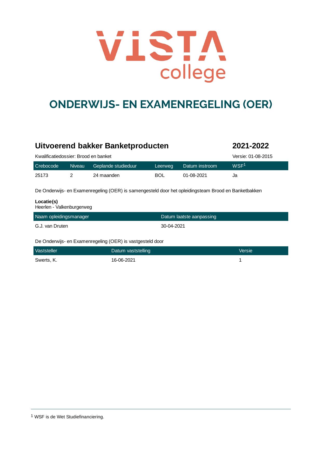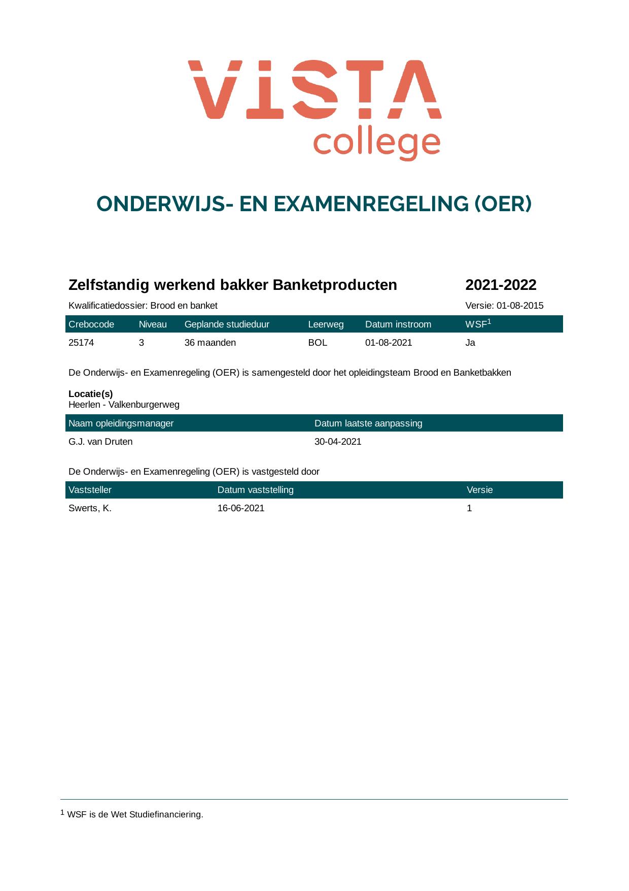 Uitvoerend bakker Banketproducten 25173B3S in cohort 2021-2022