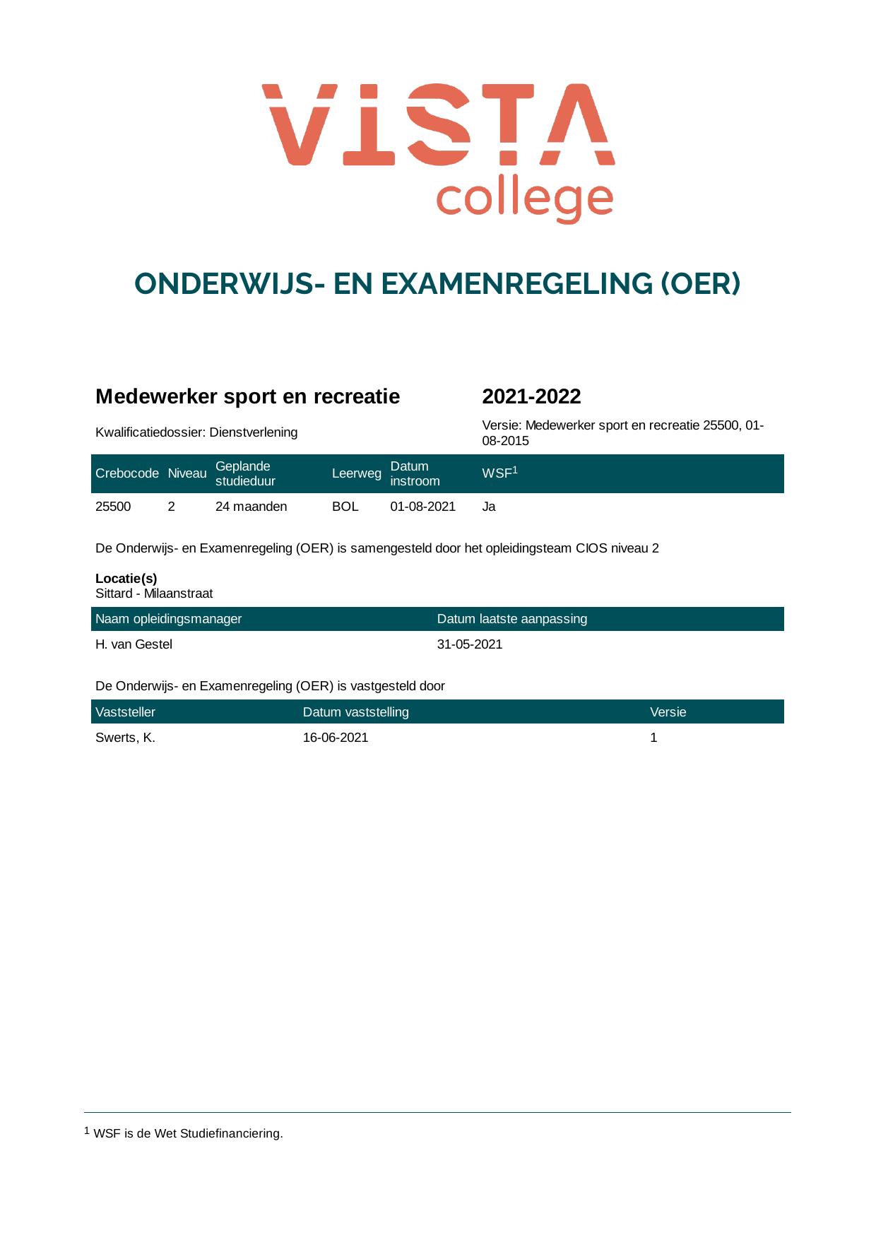 Medewerker sport en recreatie 2E25500BV2V1 in cohort 2021-2022
