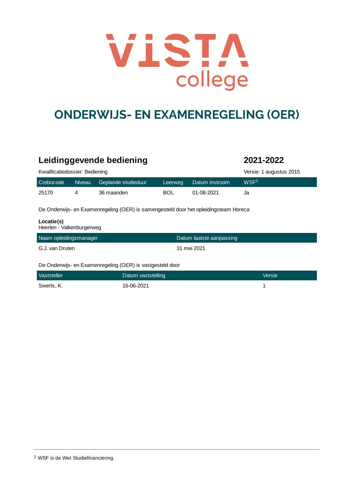 Leidinggevende bediening 25170O1S in cohort 2021-2022