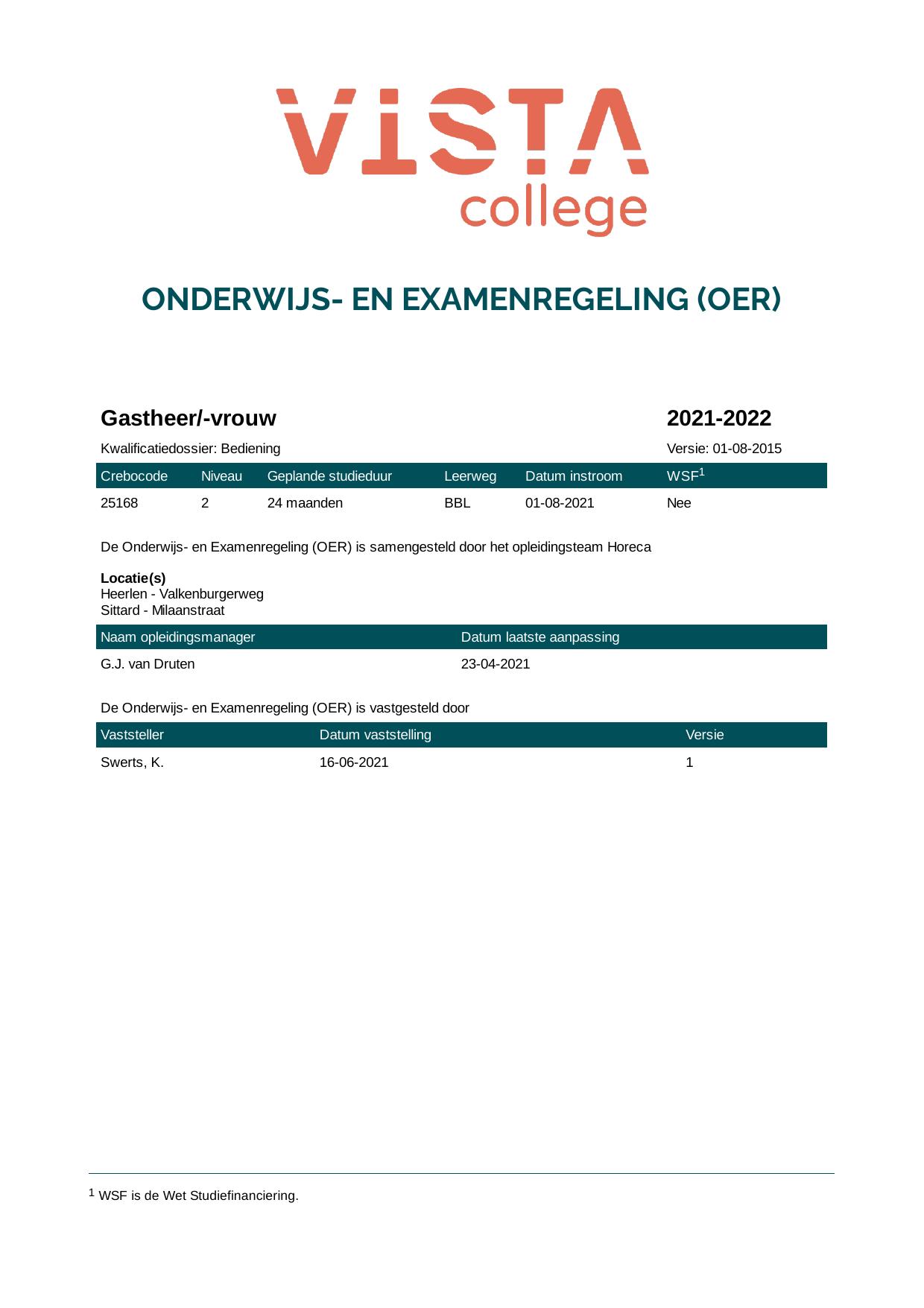 Gastheer/-vrouw 25168B1S in cohort 2021-2022