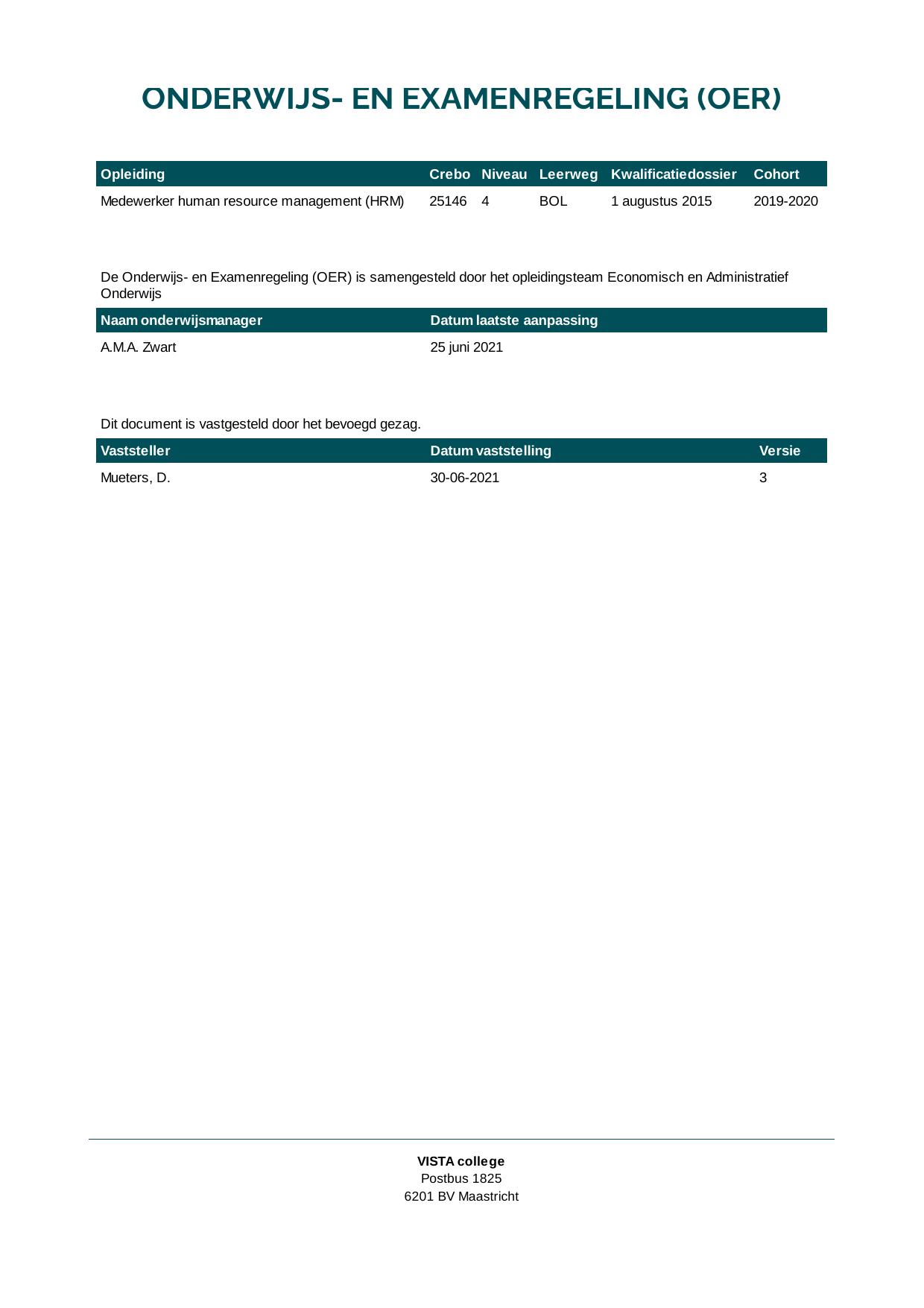 Medewerker human resource management (HRM) 25146O1S in cohort 2019-2020