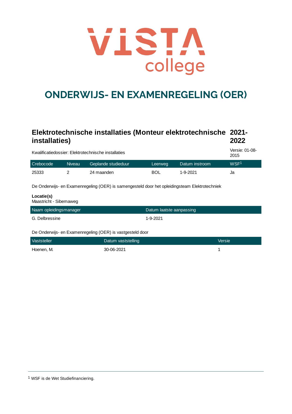 Elektrotechnische installaties (Monteur elektrotechnische installaties) 25333O1S in cohort 2021-2022