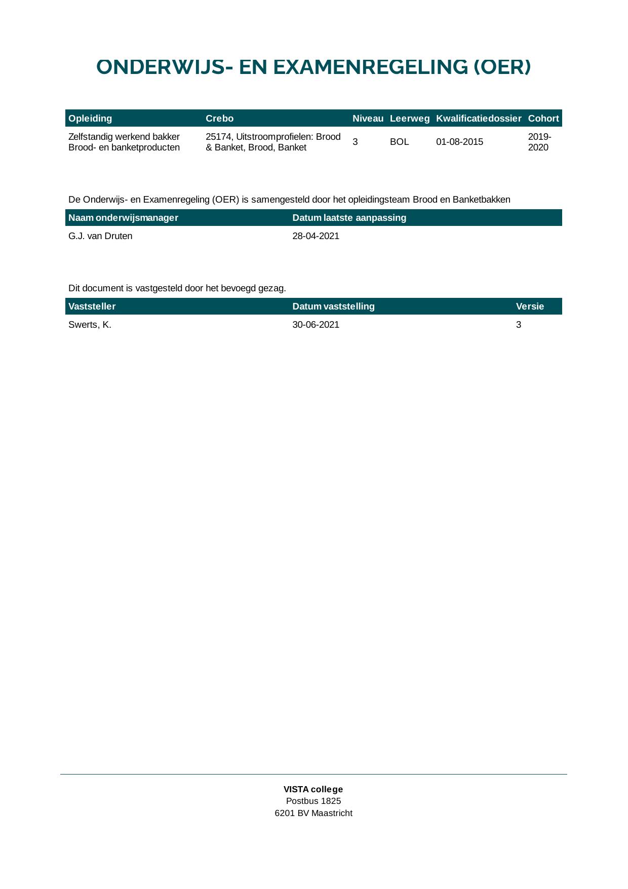 Zelfstandig werkend bakker Brood- en banketproducten 25174O1S in cohort 2020-2021