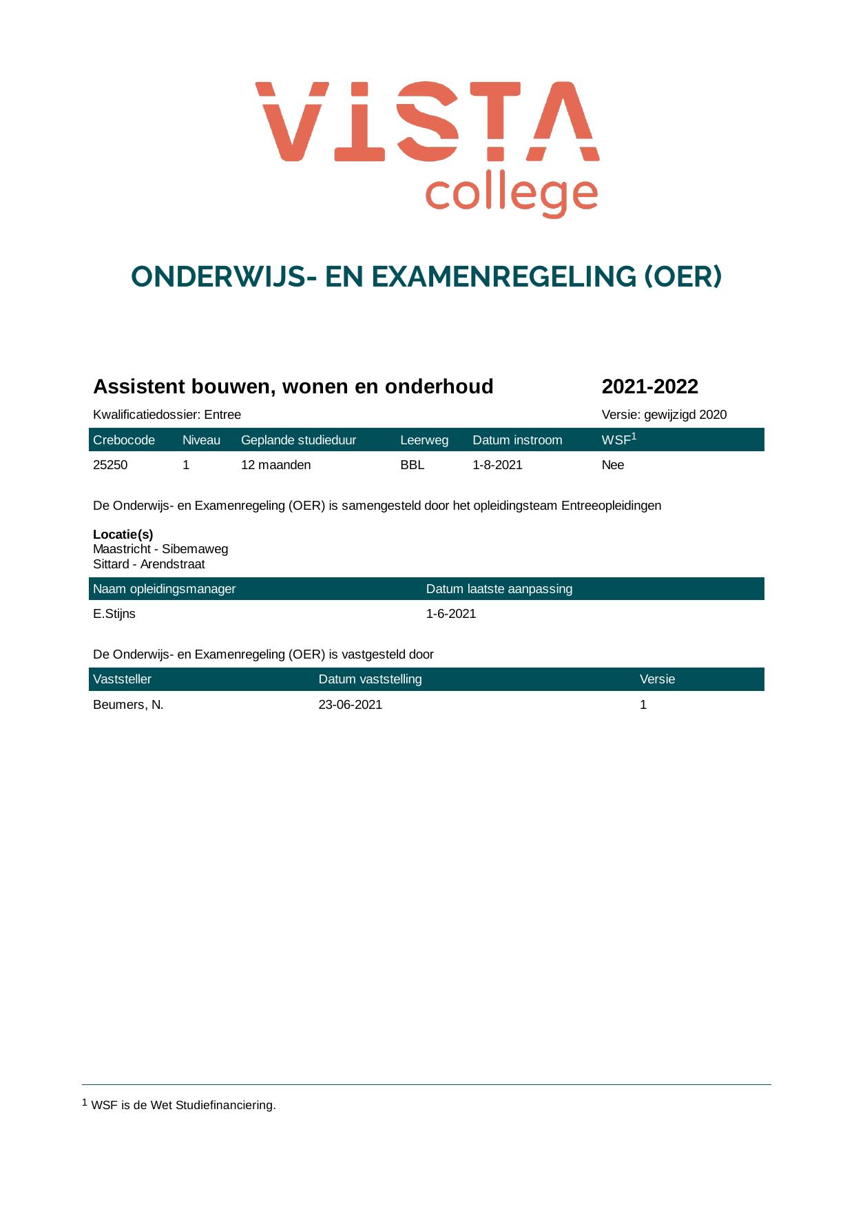Assistent bouwen, wonen en onderhoud 5A25250BB1V1 in cohort 2021-2022