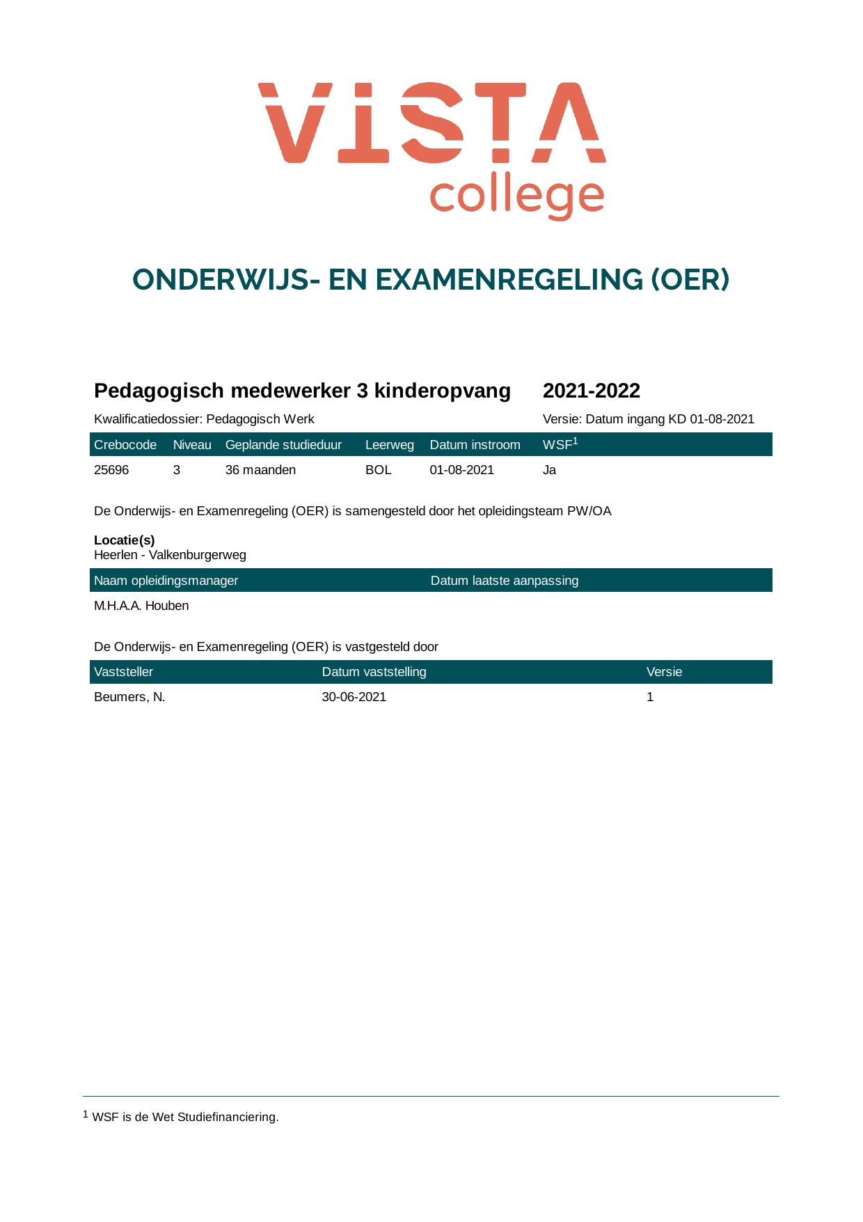 Pedagogisch medewerker 3 kinderopvang 25696O1S in cohort 2021-2022