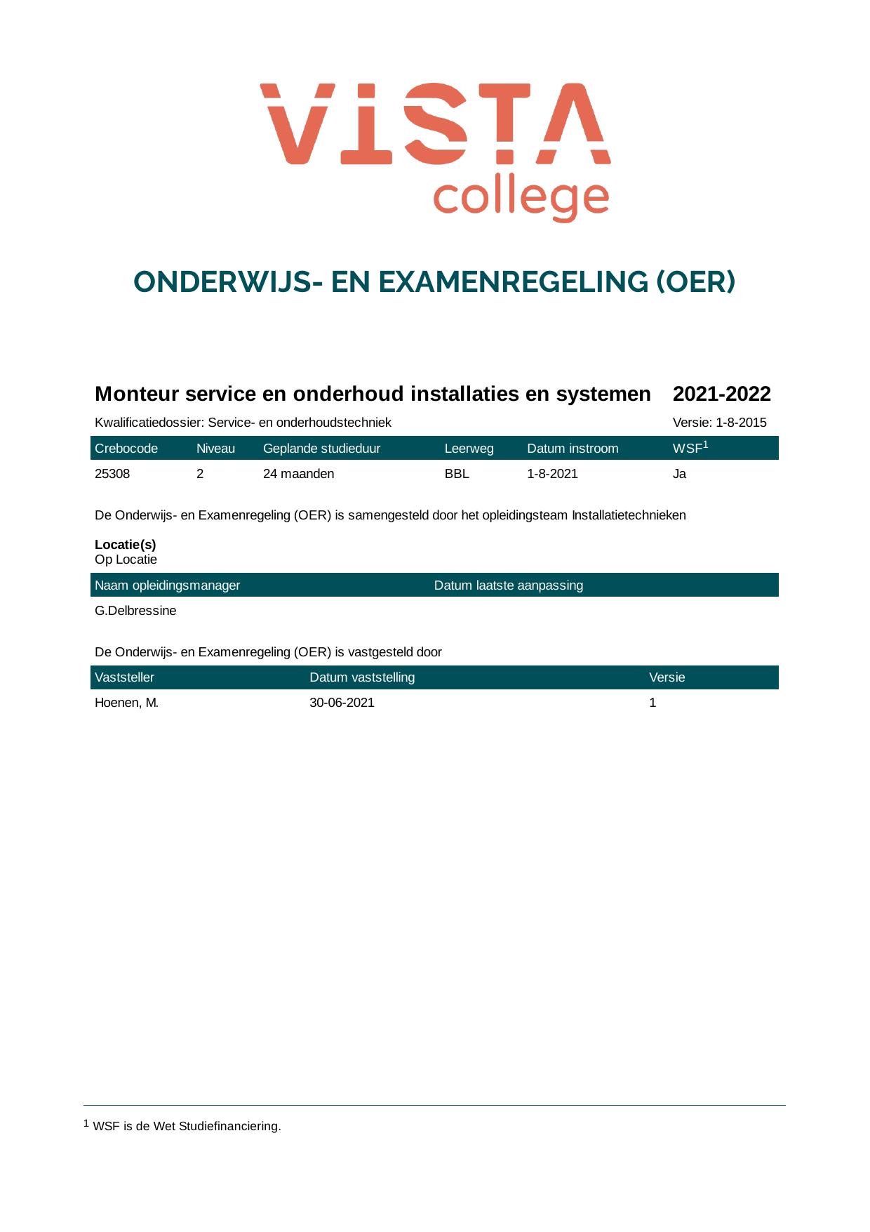 Monteur service en onderhoud installaties en systemen 25308O2S in cohort 2021-2022