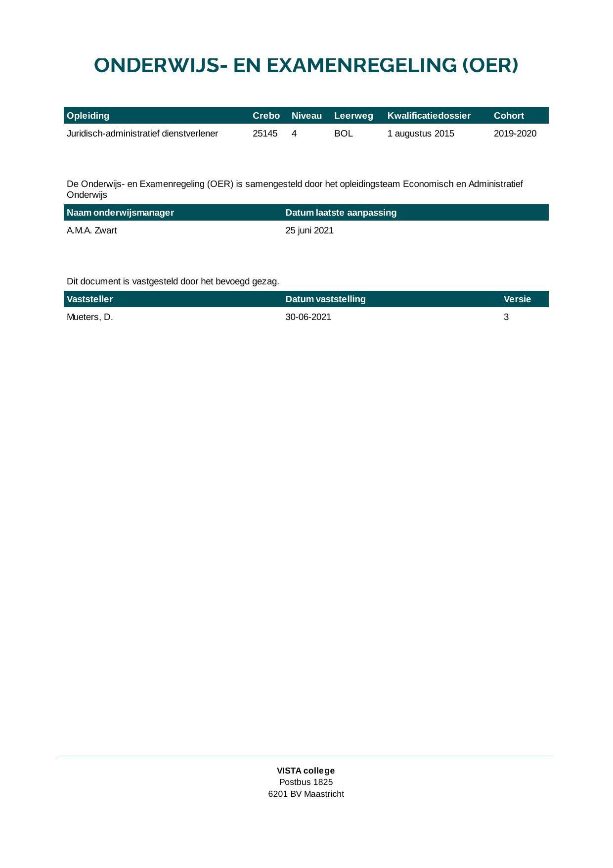 Juridisch-administratief dienstverlener 25145O1S in cohort 2019-2020