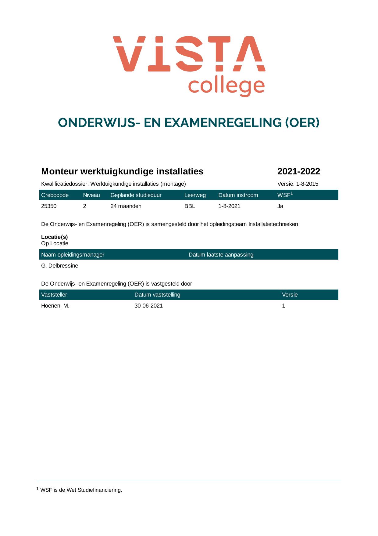 Monteur werktuigkundige installaties 25350B1E in cohort 2021-2022