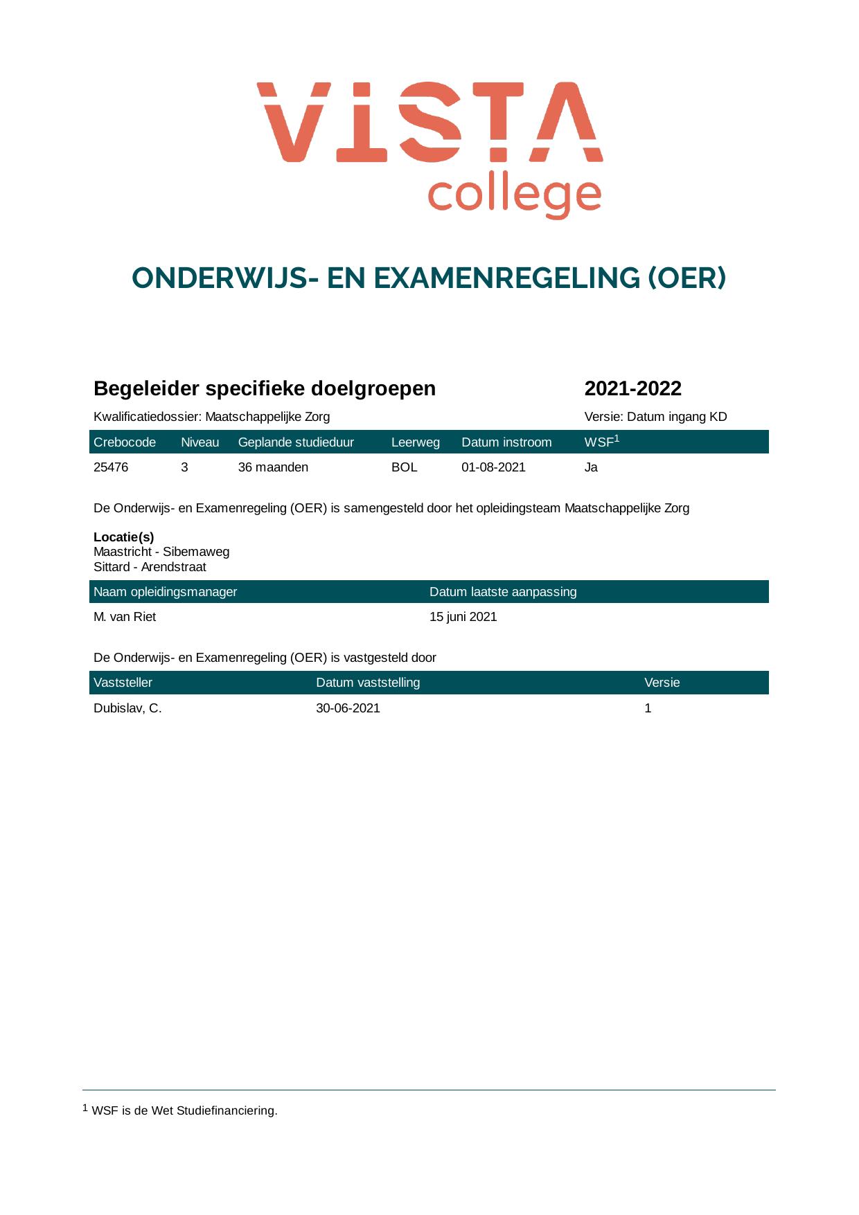 Begeleider specifieke doelgroepen 4M25476BV3V1 in cohort 2021-2022