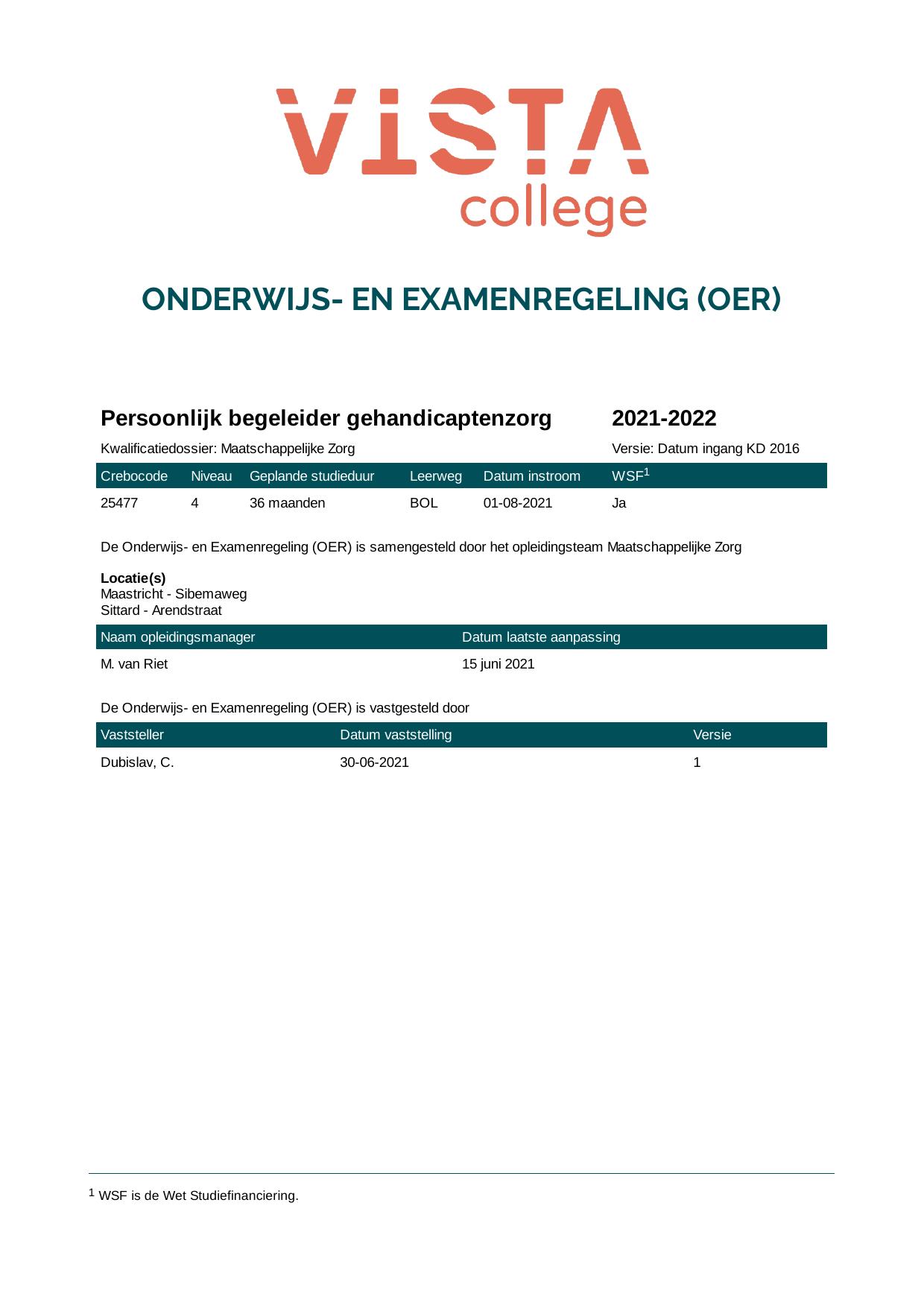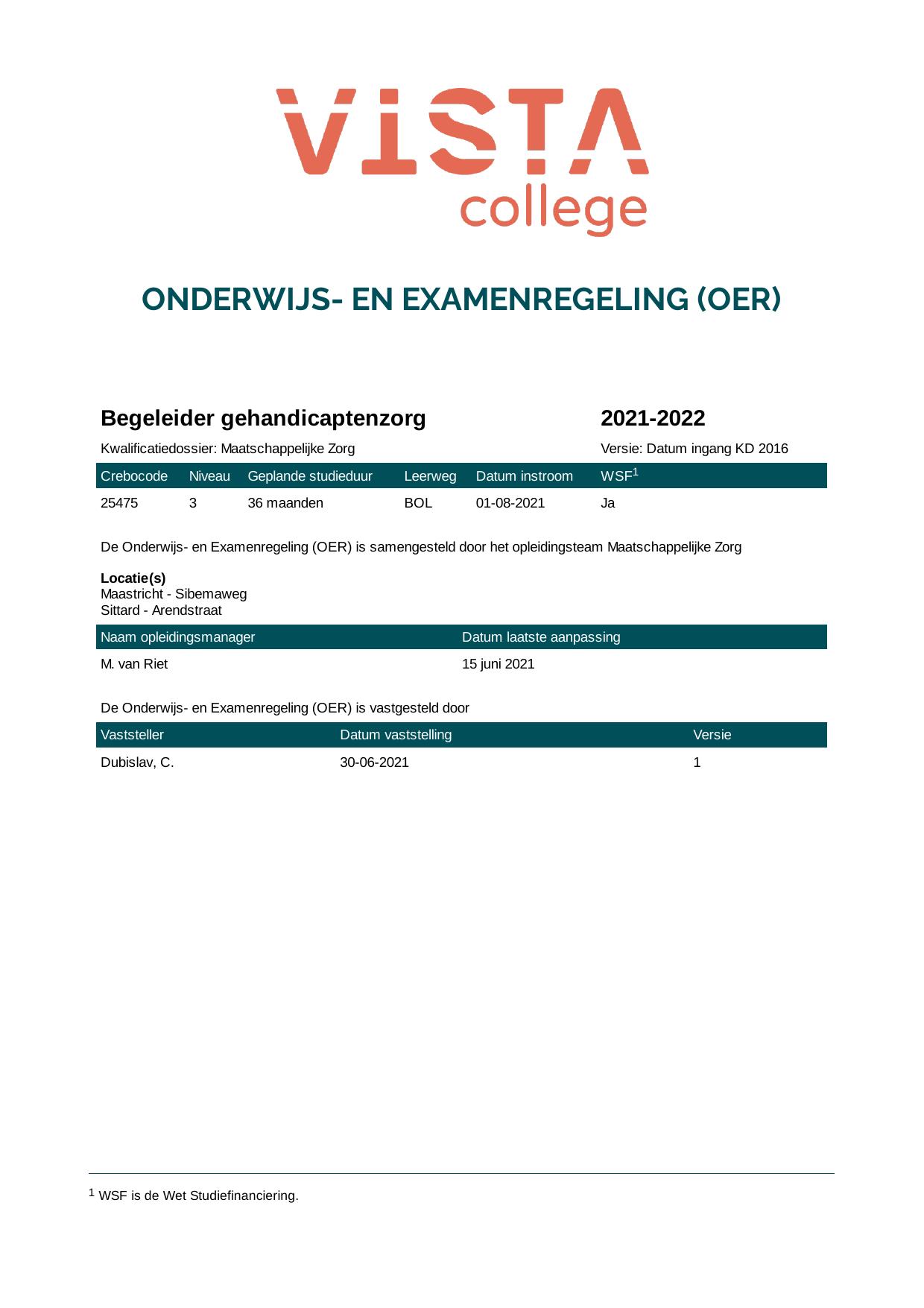 Begeleider gehandicaptenzorg 4M25475BV3V1 in cohort 2021-2022