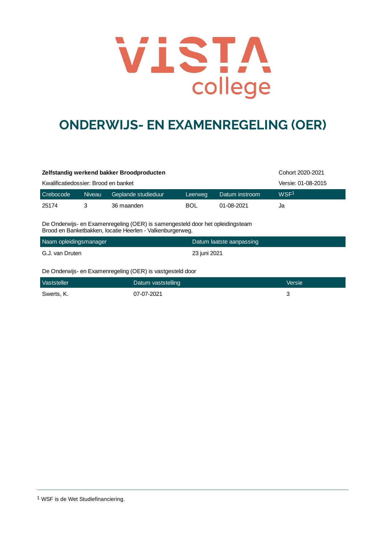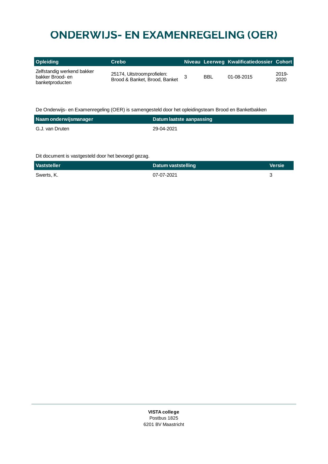 Zelfstandig werkend bakker Broodproducten 25174O2S in cohort 2020-2021