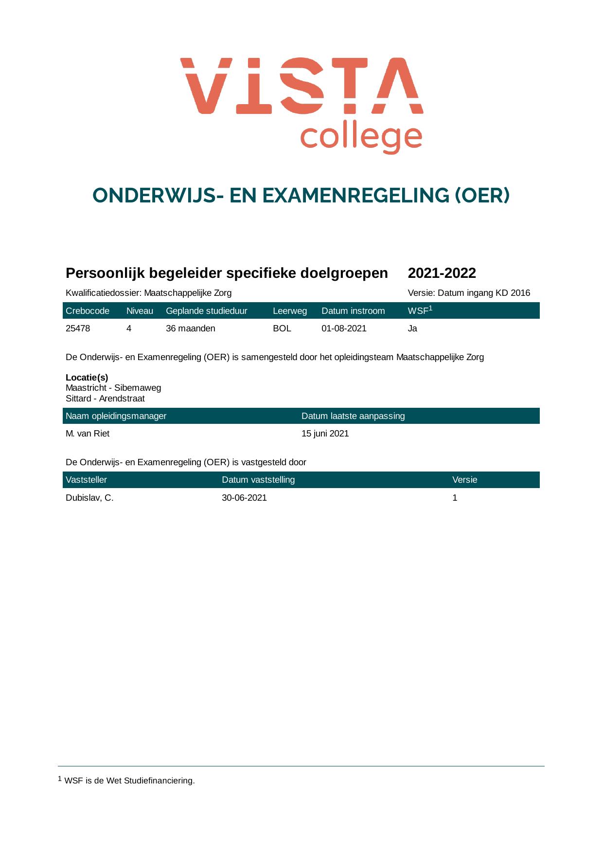 Persoonlijk begeleider specifieke doelgroepen 4M25478BV3V1 in cohort 2021-2022
