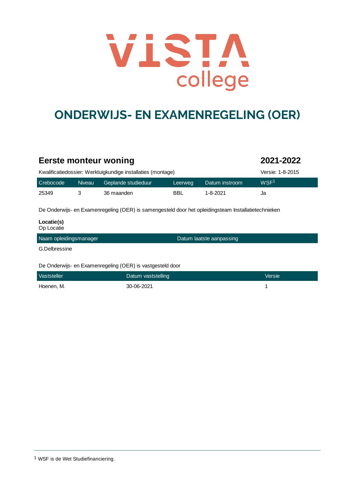 Eerste monteur woning 25349B1E in cohort 2021-2022