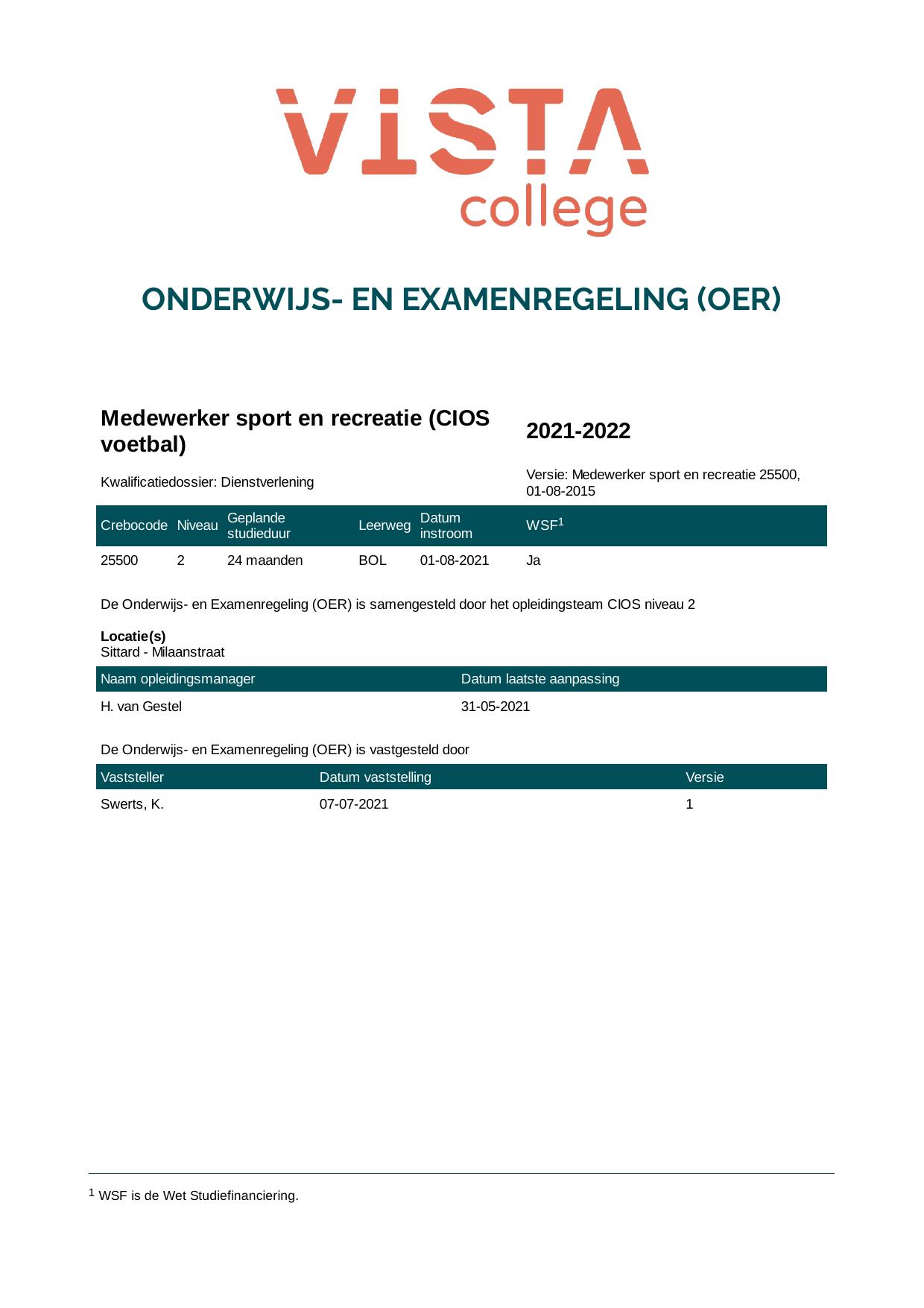 Medewerker sport en recreatie (CIOS voetbal) 2E25500BV2V3 in cohort 2021-2022
